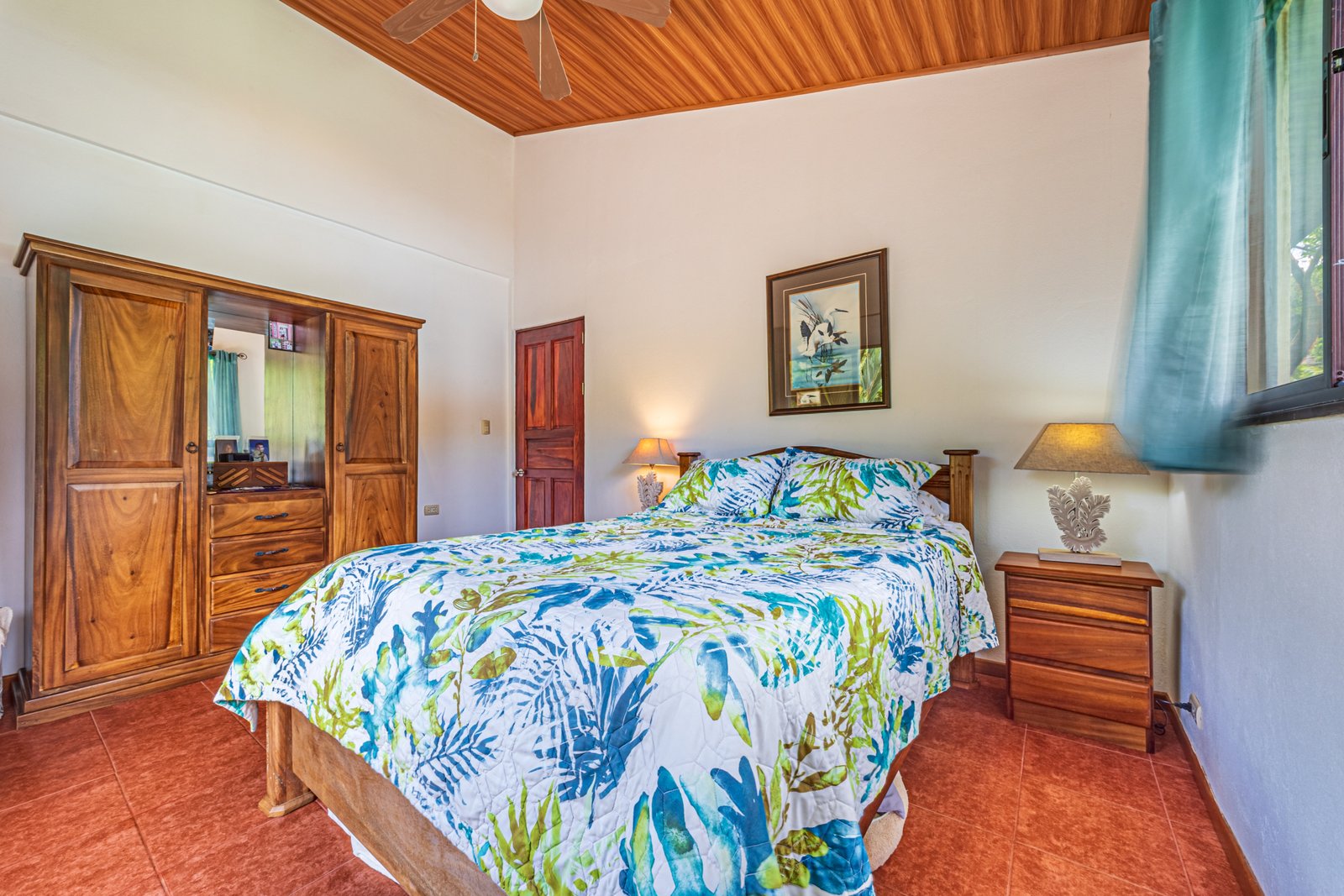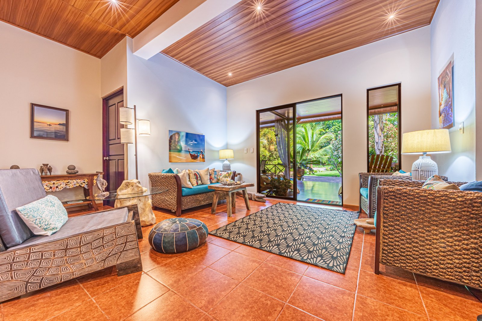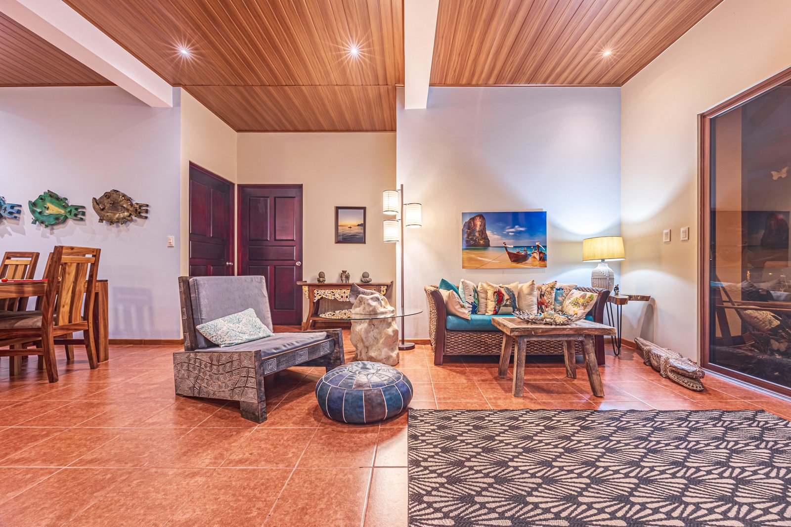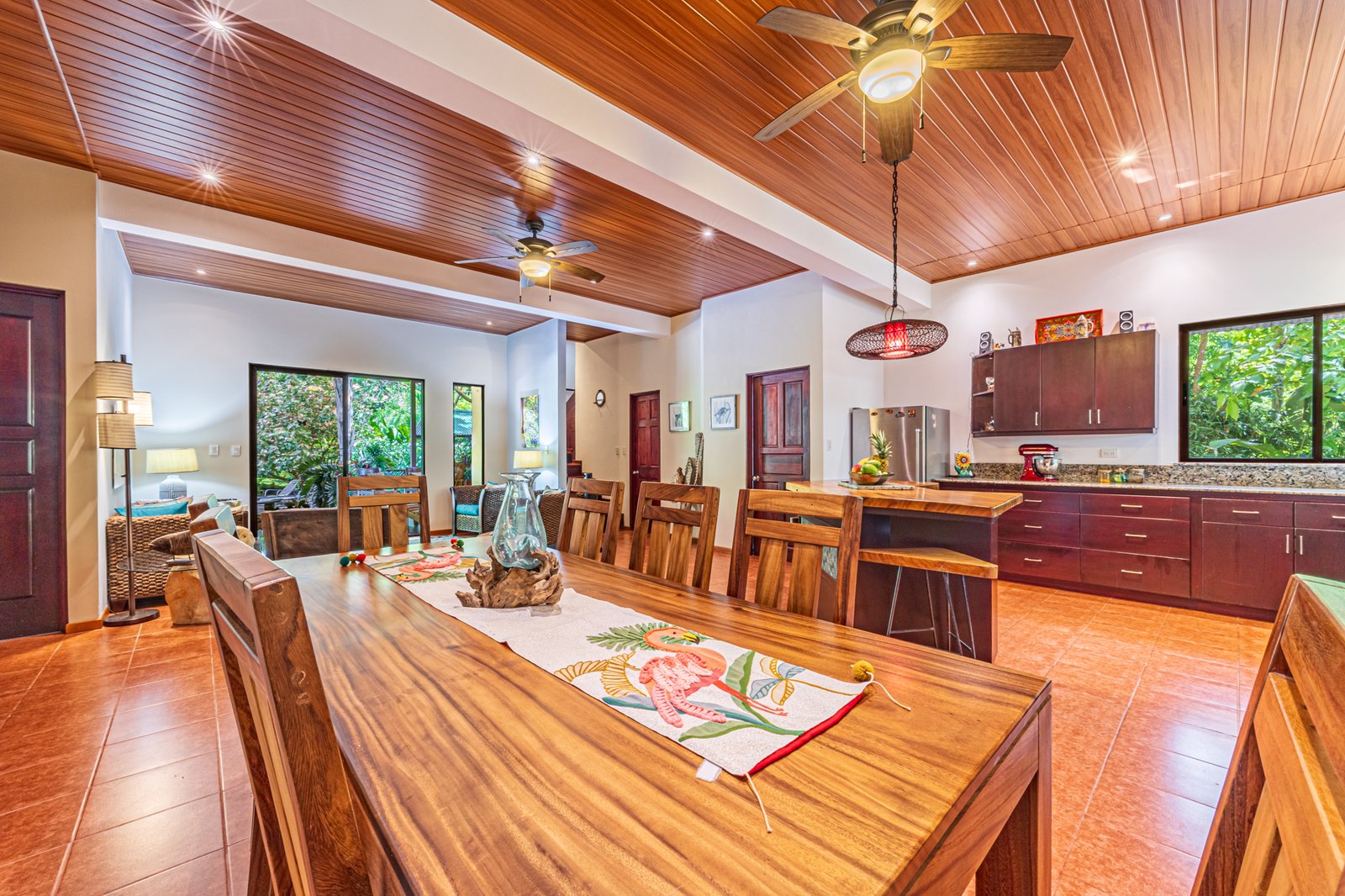 La casa cuenta con una magnífica cocina interior y exterior y un rancho, con una enorme sala de estar cubierta en la parte delantera, junto a la piscina. Tres de los cinco dormitorios tienen amplios porches que se conectan directamente con ellos. La cocina cuenta con encimeras de granito nuevas y una isla a medida con una cubierta de una sola pieza de Guanacaste y dos taburetes a juego. En el segundo nivel, hay dos amplios dormitorios, una sala de estar ideal como oficina y un enorme porche exterior para tomar el sol, practicar yoga, contemplar las estrellas al atardecer y mucho más.