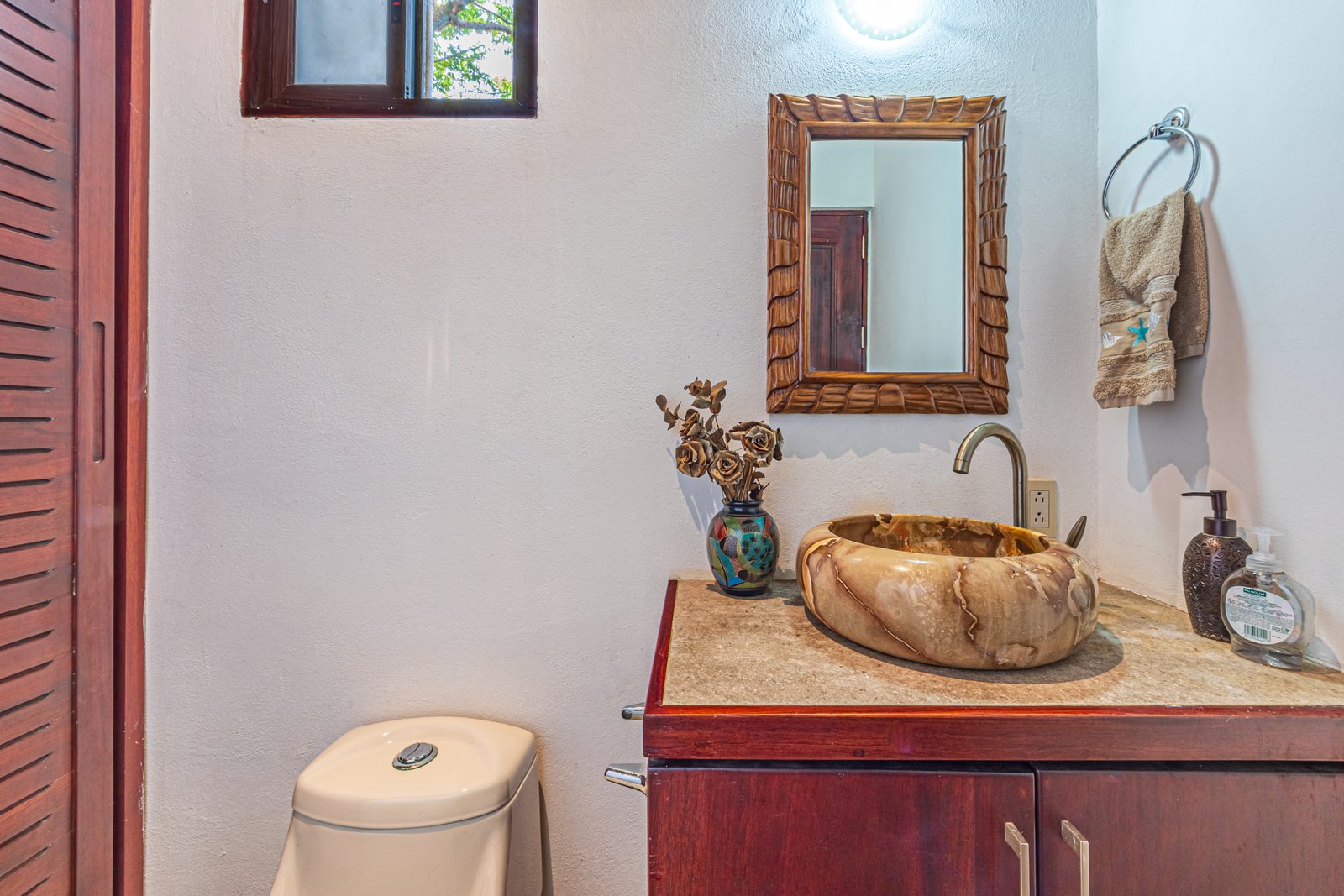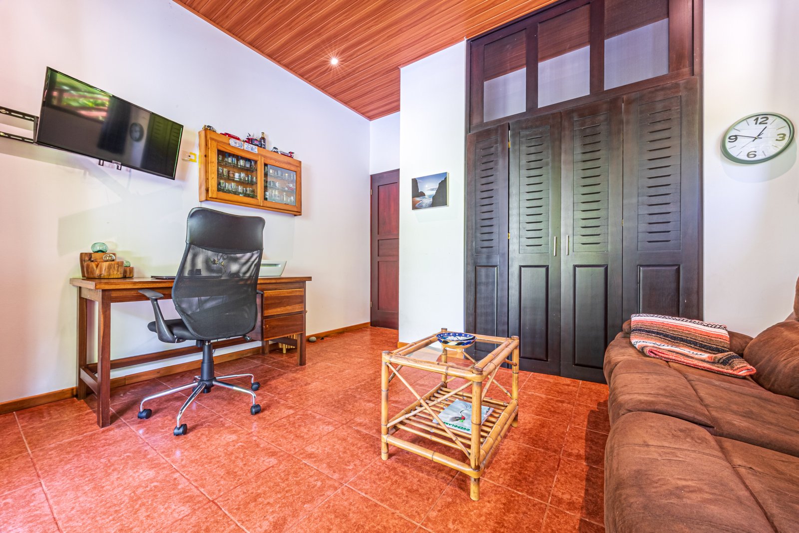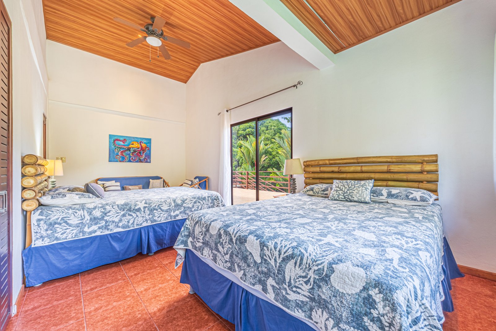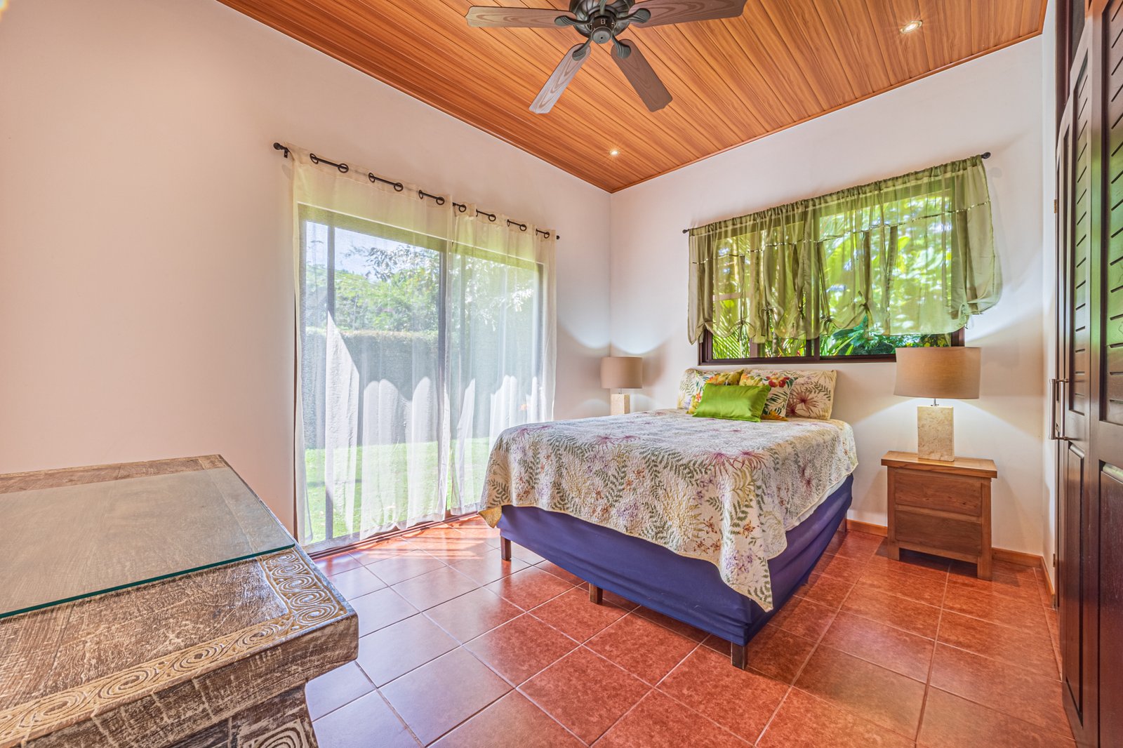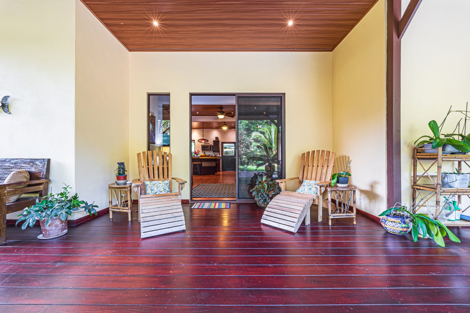 La casa cuenta con una magnífica cocina interior y exterior y un rancho, con una enorme sala de estar cubierta en la parte delantera, junto a la piscina. Tres de los cinco dormitorios tienen amplios porches que se conectan directamente con ellos. La cocina cuenta con encimeras de granito nuevas y una isla a medida con una cubierta de una sola pieza de Guanacaste y dos taburetes a juego. En el segundo nivel, hay dos amplios dormitorios, una sala de estar ideal como oficina y un enorme porche exterior para tomar el sol, practicar yoga, contemplar las estrellas al atardecer y mucho más.
