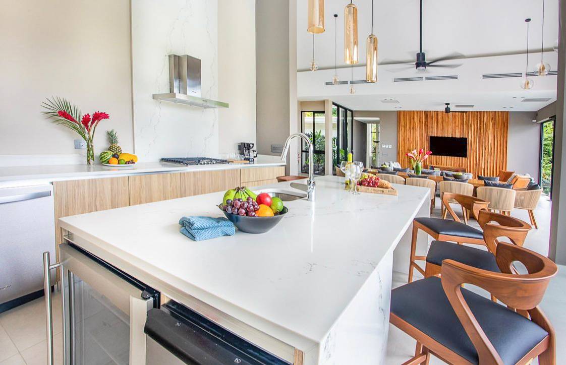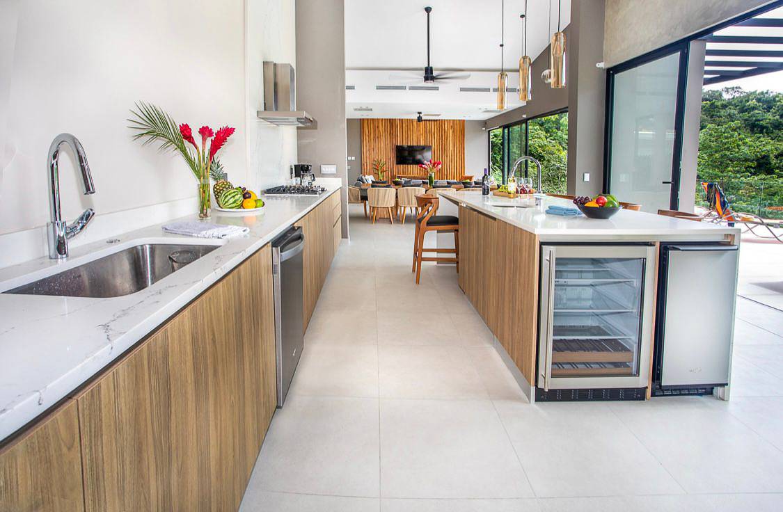 Creada mediante la colaboración entre uno de los arquitectos más destacados de la zona y un respetado ingeniero civil, esta residencia refleja una visión unificada de sofisticación y durabilidad. Desde el momento en que entra, los altos techos de 6 metros y una vista panorámica que se extiende desde las cimas de las montañas hasta la costa del Pacífico marcan la pauta: un sello inconfundible de la vida de lujo en Costa Rica.