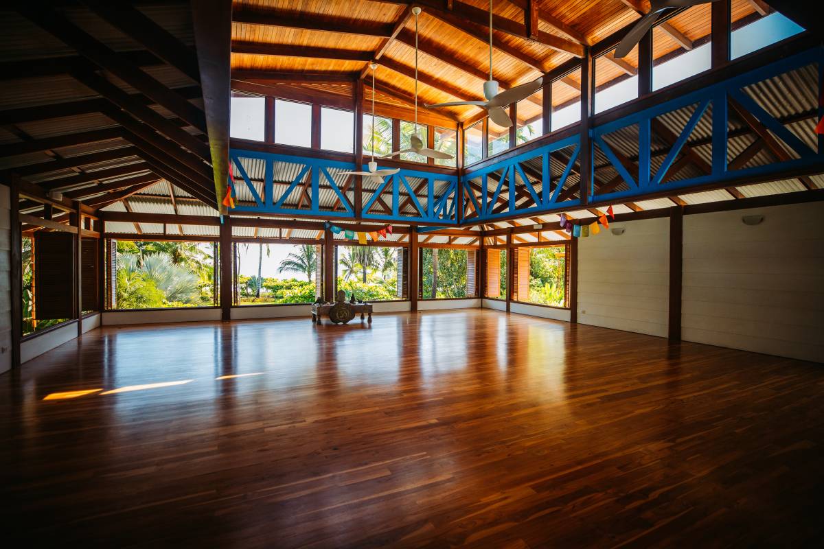 Estudio de yoga y arte de más de 4000 pies cuadrados con vista a la impresionante playa bordeada de palmeras