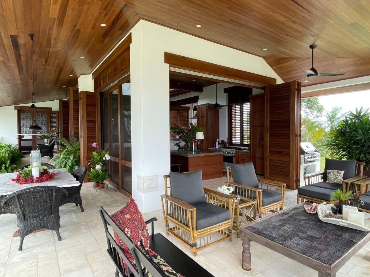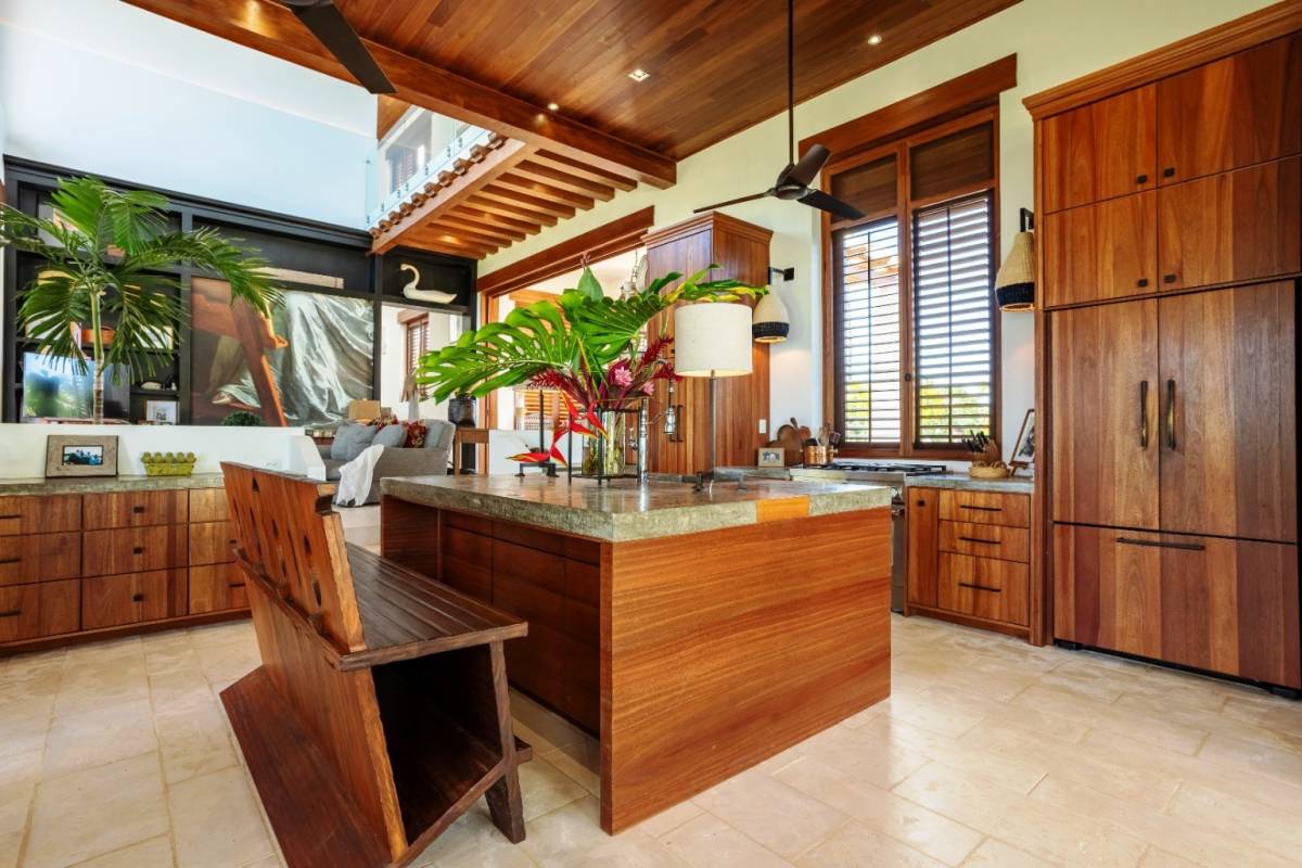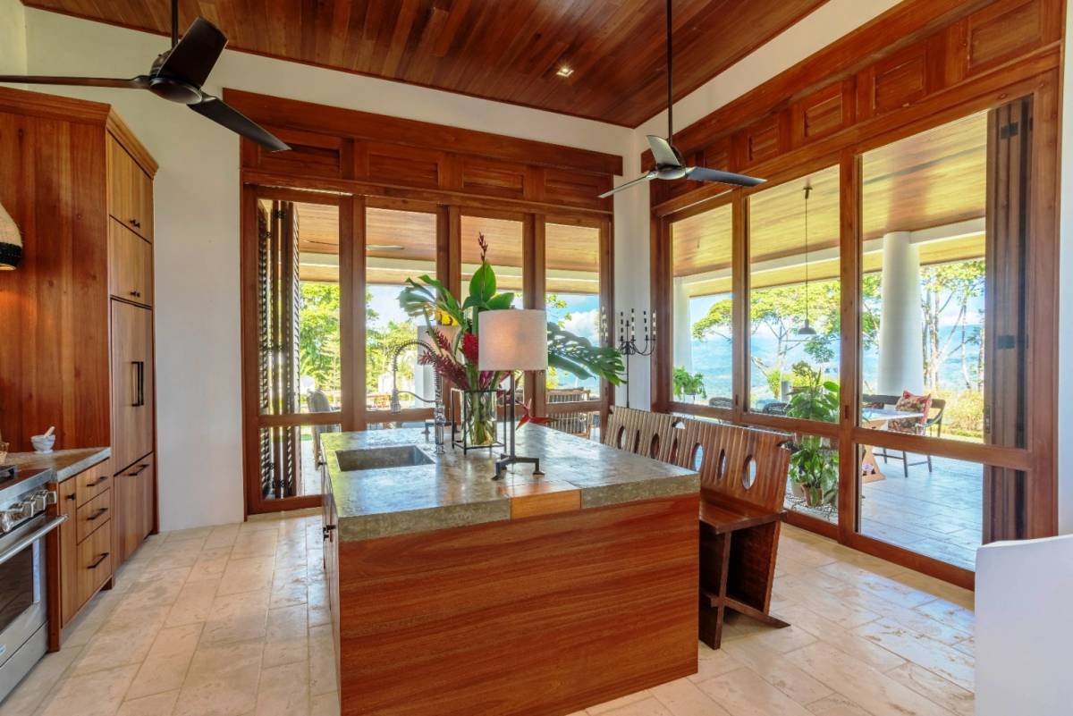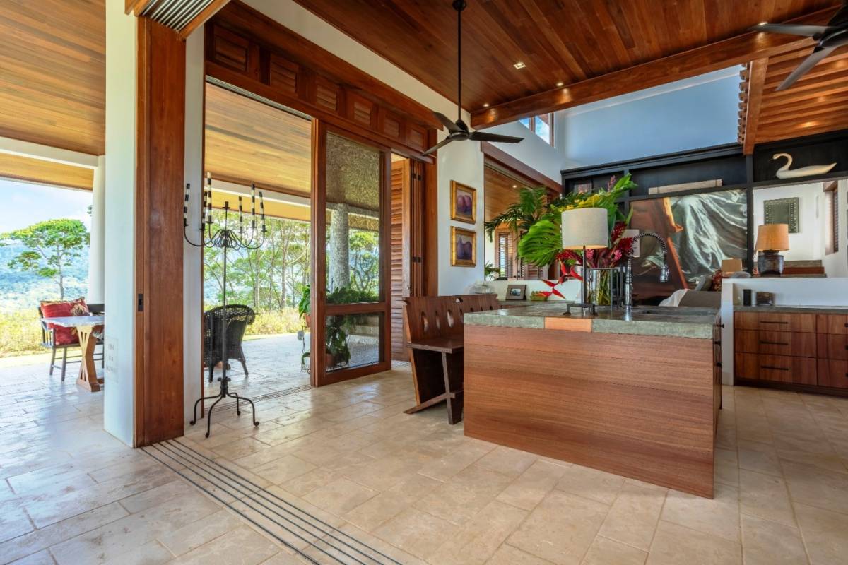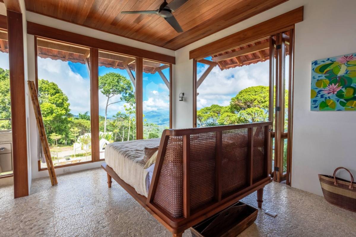 La residencia cuenta con 2 dormitorios, 2 baños, una oficina privada y muebles a medida, reflejando el gusto meticuloso de un arquitecto/propietario con amplia experiencia en soluciones adaptadas al clima. Disfrute de las vistas al mar desde el segundo piso y la azotea, mientras que el telón de fondo de las cordilleras de Chirripó y Talamanca ofrece un panorama impresionante desde los patios y comedores.