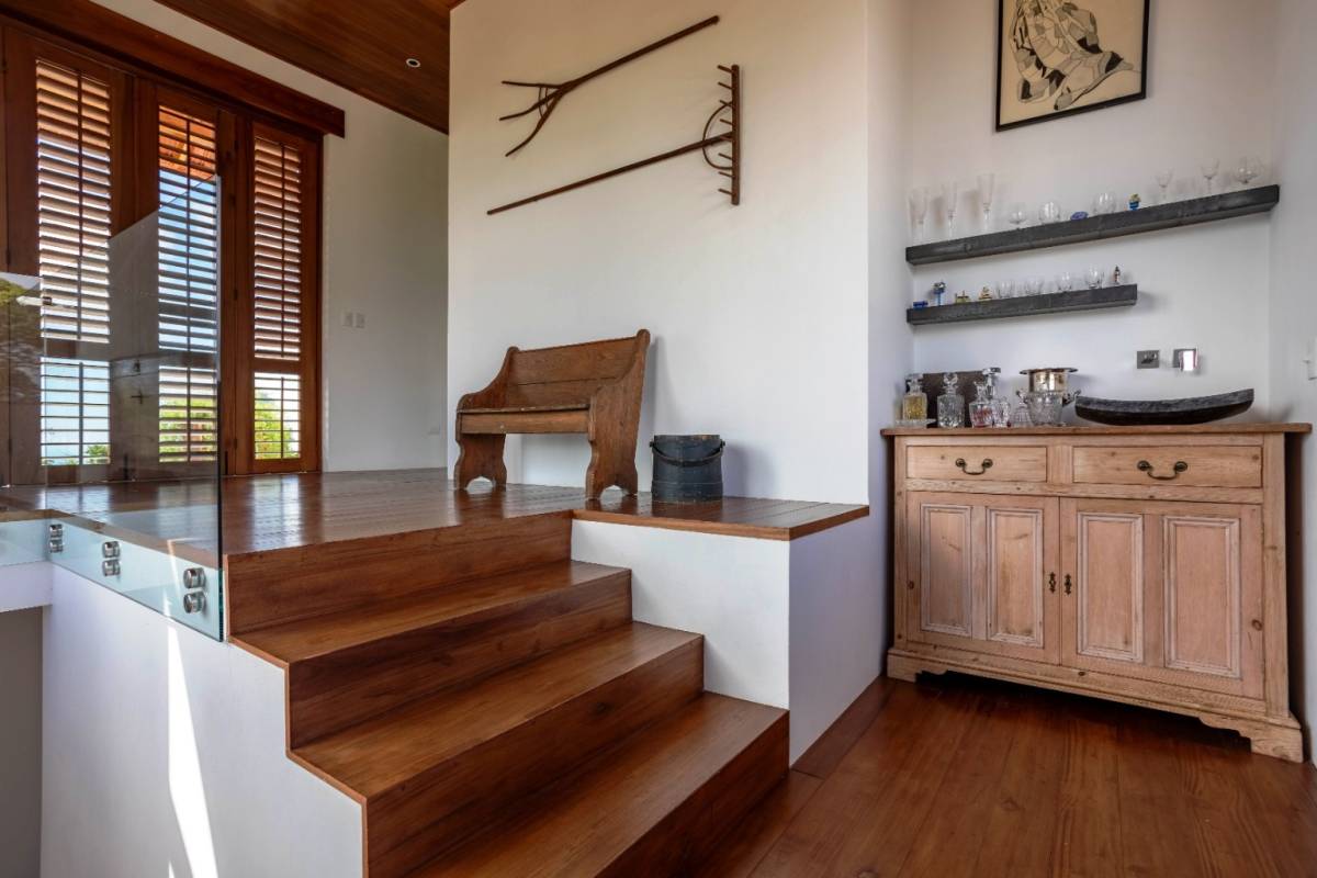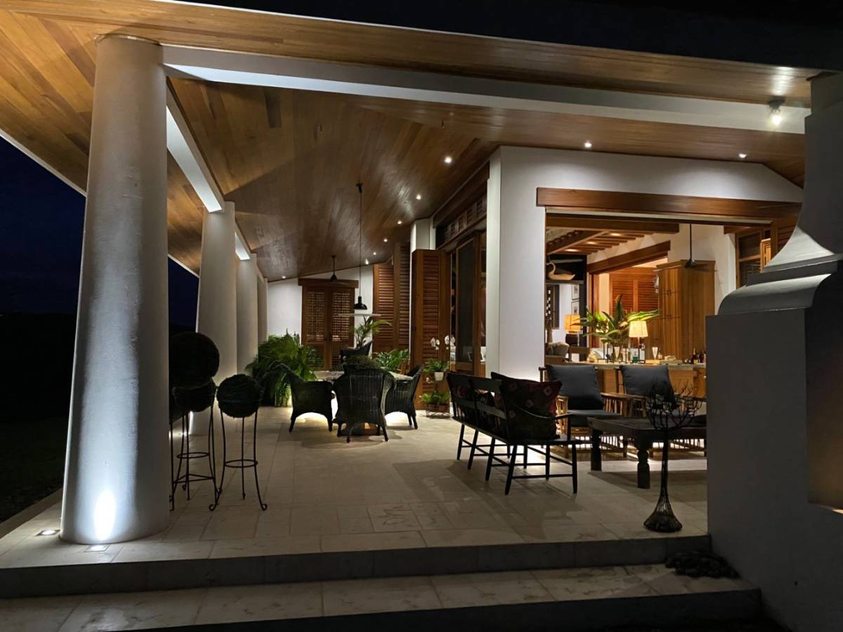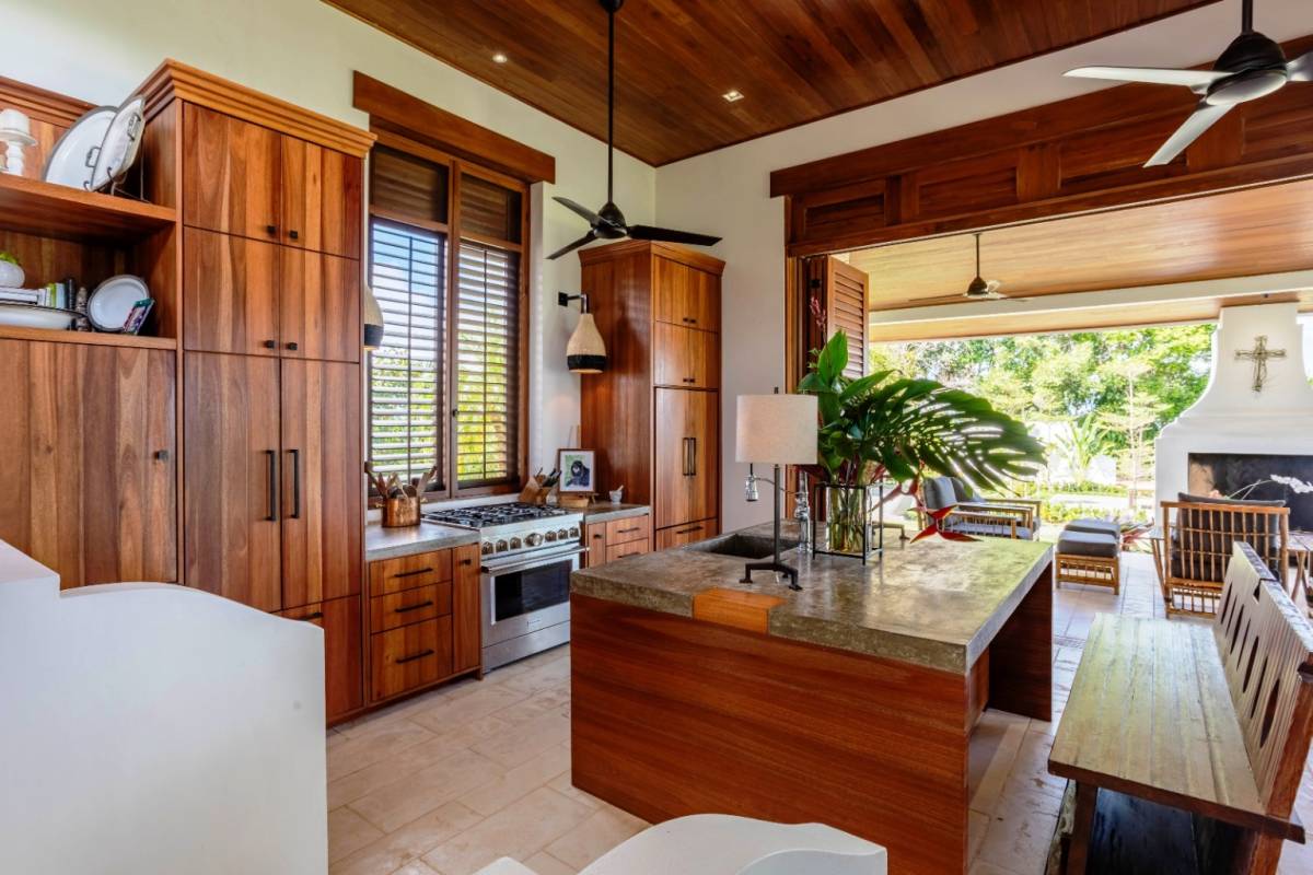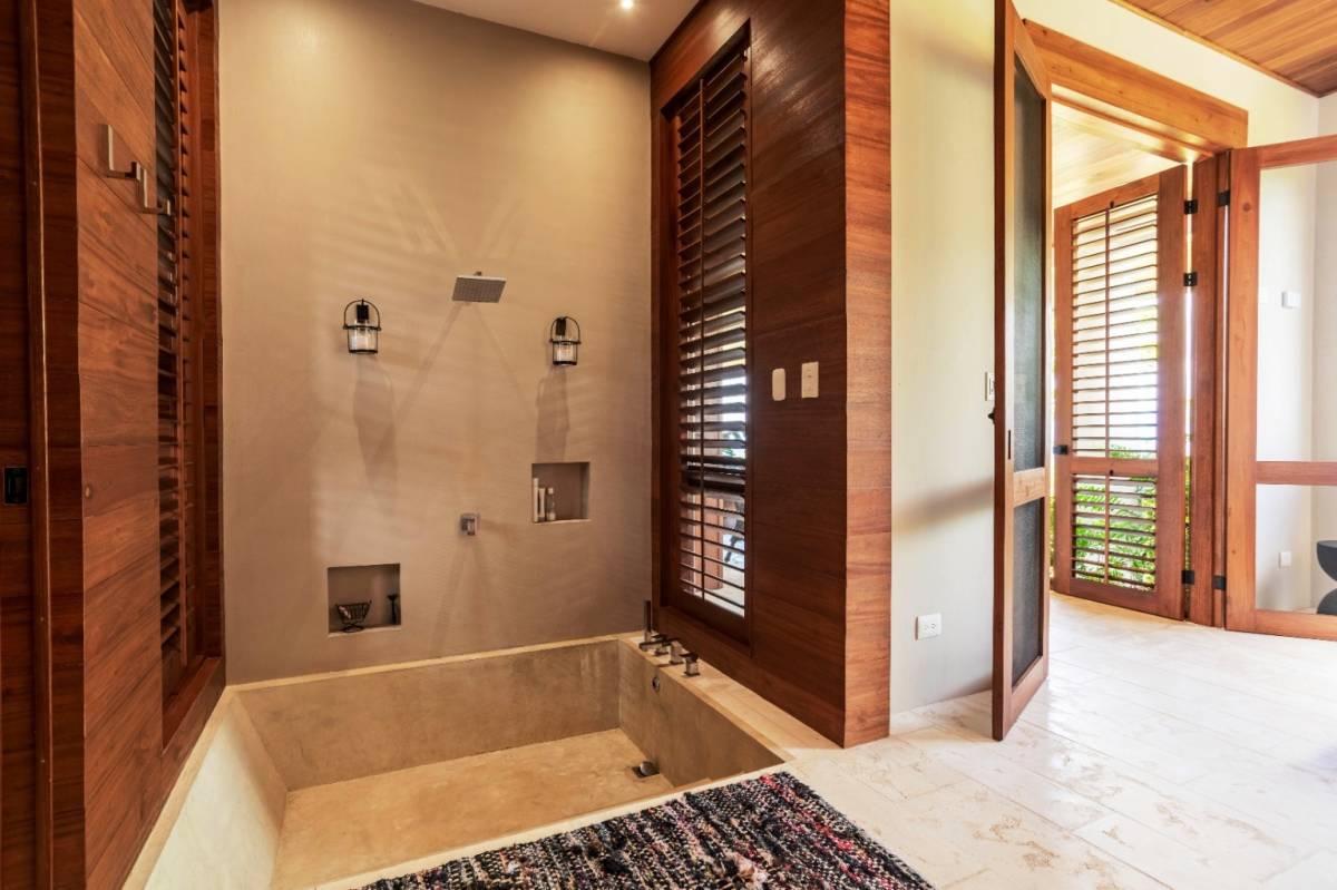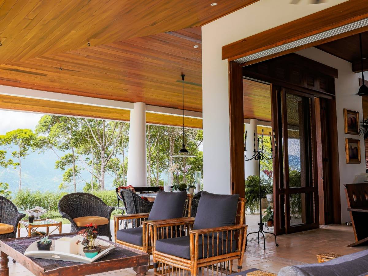 La residencia cuenta con 2 dormitorios, 2 baños, una oficina privada y muebles a medida, reflejando el gusto meticuloso de un arquitecto/propietario con amplia experiencia en soluciones adaptadas al clima. Disfrute de las vistas al mar desde el segundo piso y la azotea, mientras que el telón de fondo de las cordilleras de Chirripó y Talamanca ofrece un panorama impresionante desde los patios y comedores.