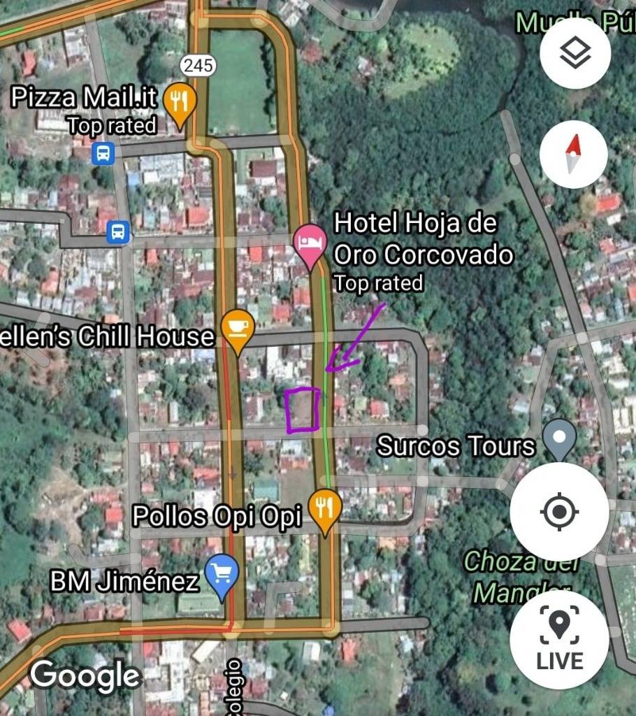 Ubicación privilegiada: Ubicado en el centro de Puerto Jiménez, este terreno goza de una ubicación privilegiada. Su fácil acceso a las principales vías y servicios lo convierte en una opción atractiva para diversos negocios.