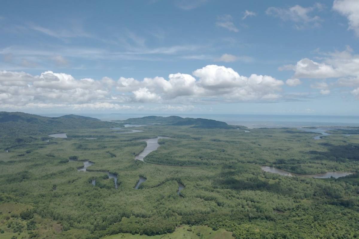 Este terreno de 64.6 acres ofrece vistas al río Sierpe en su desembocadura en el océano Pacífico, con la Isla del Caño a lo lejos. La naturaleza prospera aquí, con una orquesta de vida silvestre que se integra armoniosamente con el entorno natural.