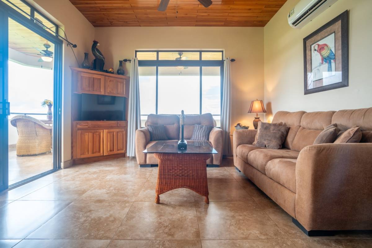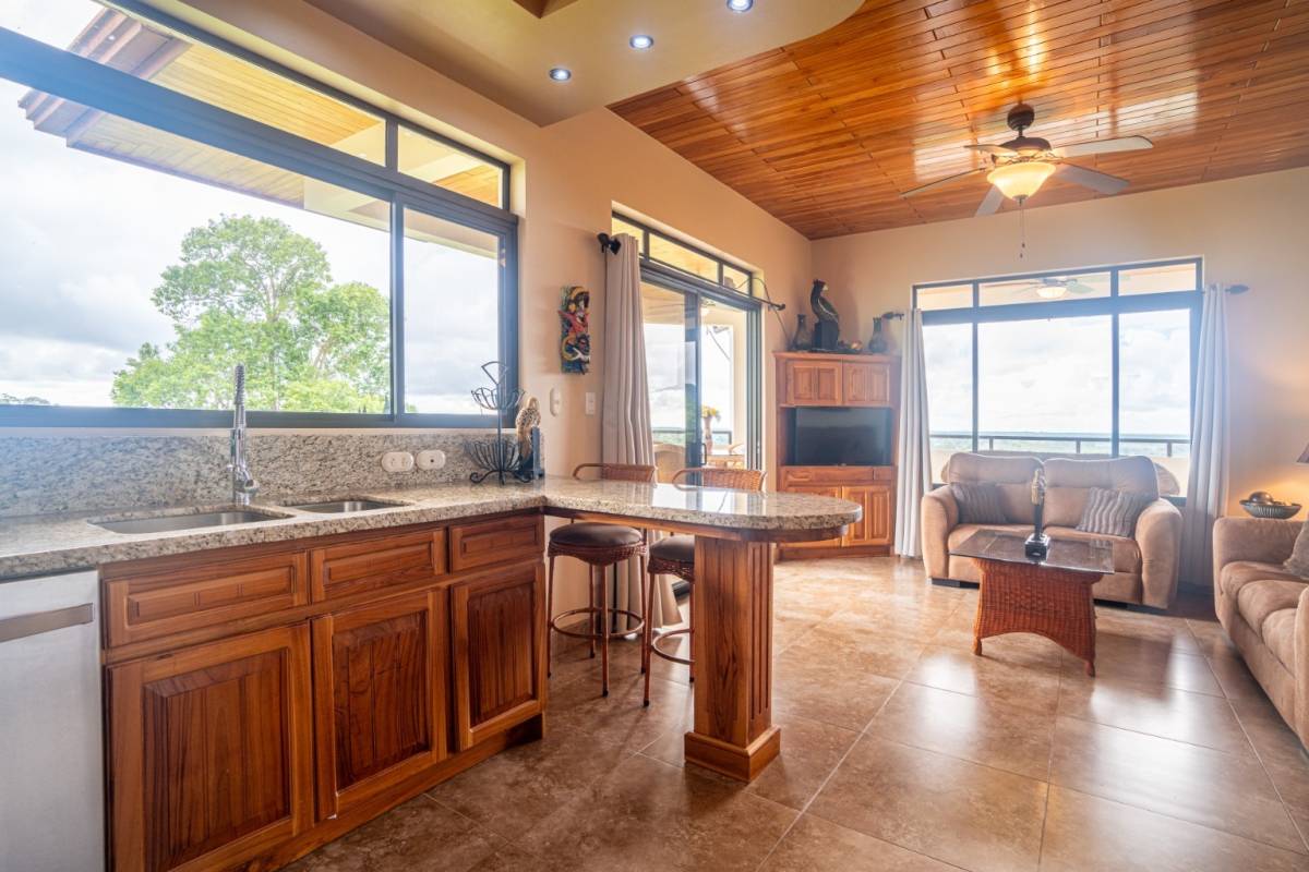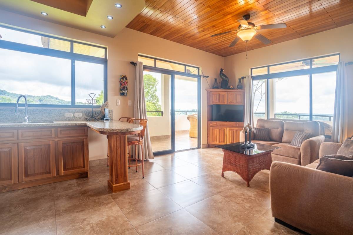 Ubicada en la tranquila comunidad privada de San Buenas, a 213 metros de altura, lo suficientemente alta como para disfrutar de la brisa del Pacífico Sur y de las montañas de San Buenaventura, esta excepcional propiedad le espera. Este penthouse es una joya a solo unos pasos de la gran piscina y terraza con baño y vestidor. Un patio privado cubierto ofrece impresionantes vistas al mar y al atardecer, desde donde podrá observar las nubes descender por las montañas de San Buenas. Los sonidos de la selva, como los tucanes y otras aves exóticas, se escuchan a diario, mientras que la serenata de los aulladores y la visita ocasional de una manada de monos araña le esperan. Y… no necesita 4x4, solo 5 minutos cuesta arriba para disfrutar plenamente de la tranquilidad.