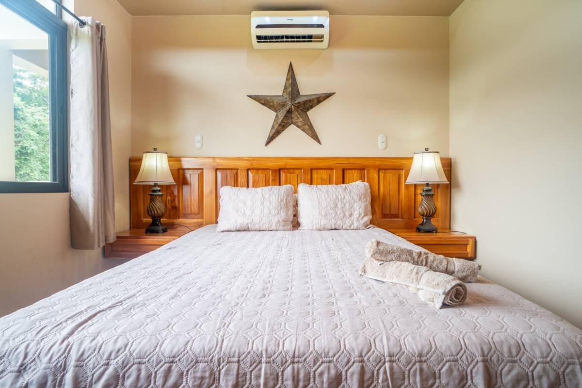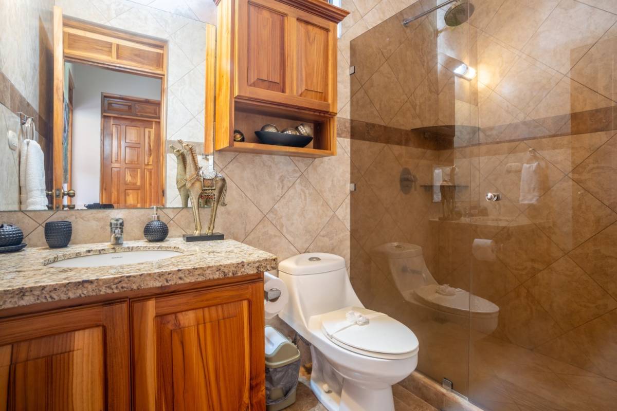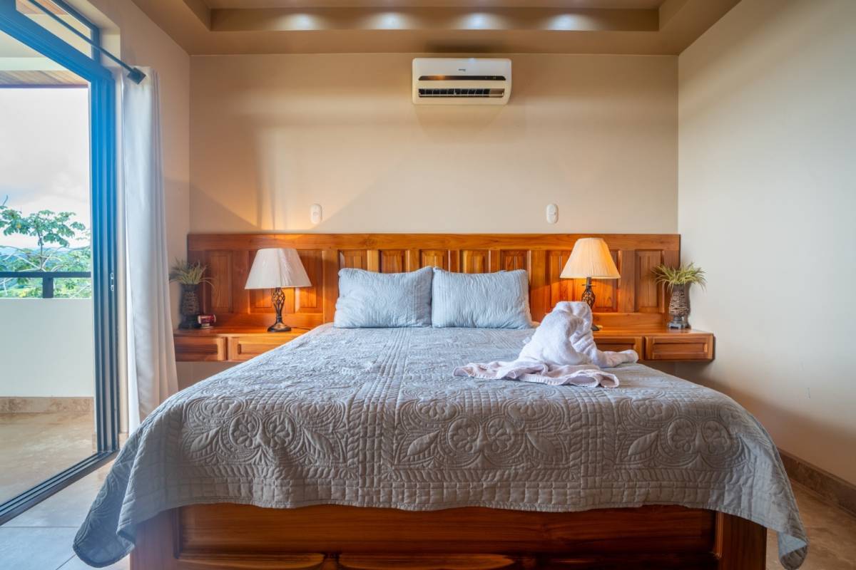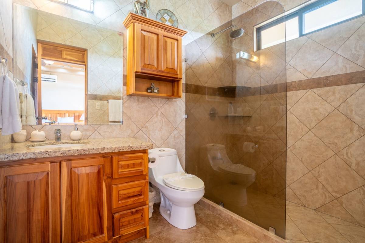 Ubicada en la tranquila comunidad privada de San Buenas, a 213 metros de altura, lo suficientemente alta como para disfrutar de la brisa del Pacífico Sur y de las montañas de San Buenaventura, esta excepcional propiedad le espera. Este penthouse es una joya a solo unos pasos de la gran piscina y terraza con baño y vestidor. Un patio privado cubierto ofrece impresionantes vistas al mar y al atardecer, desde donde podrá observar las nubes descender por las montañas de San Buenas. Los sonidos de la selva, como los tucanes y otras aves exóticas, se escuchan a diario, mientras que la serenata de los aulladores y la visita ocasional de una manada de monos araña le esperan. Y… no necesita 4x4, solo 5 minutos cuesta arriba para disfrutar plenamente de la tranquilidad.