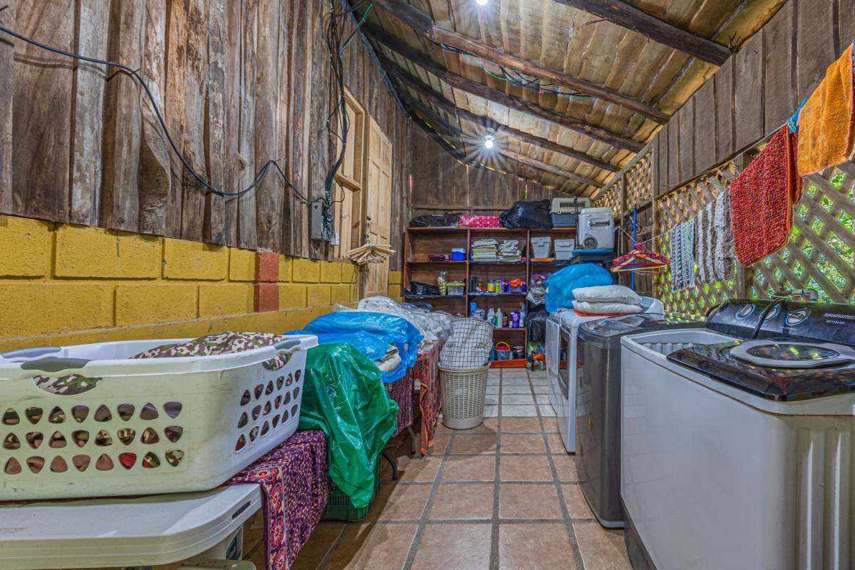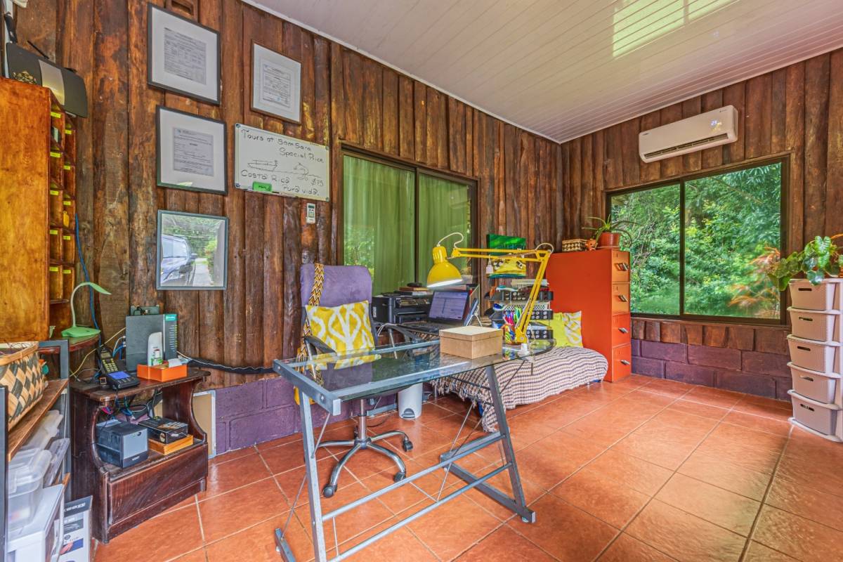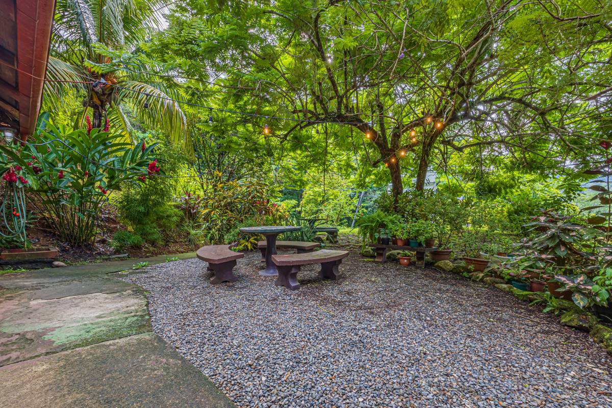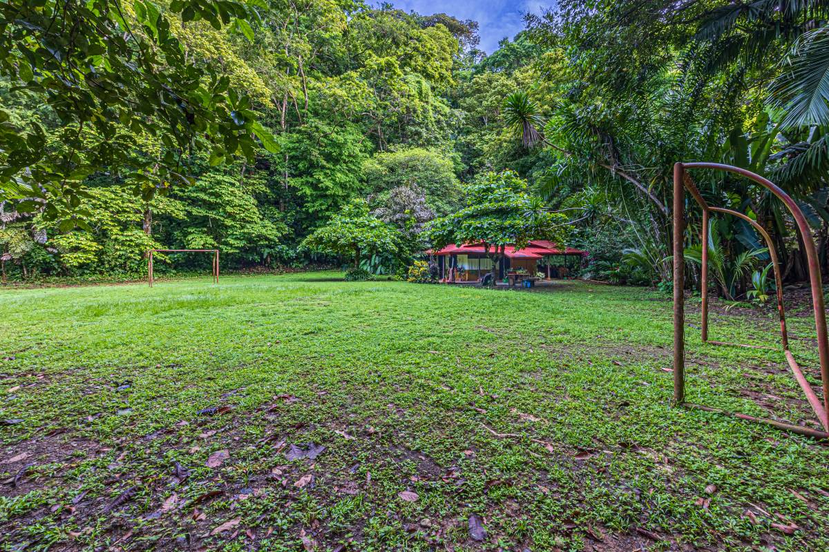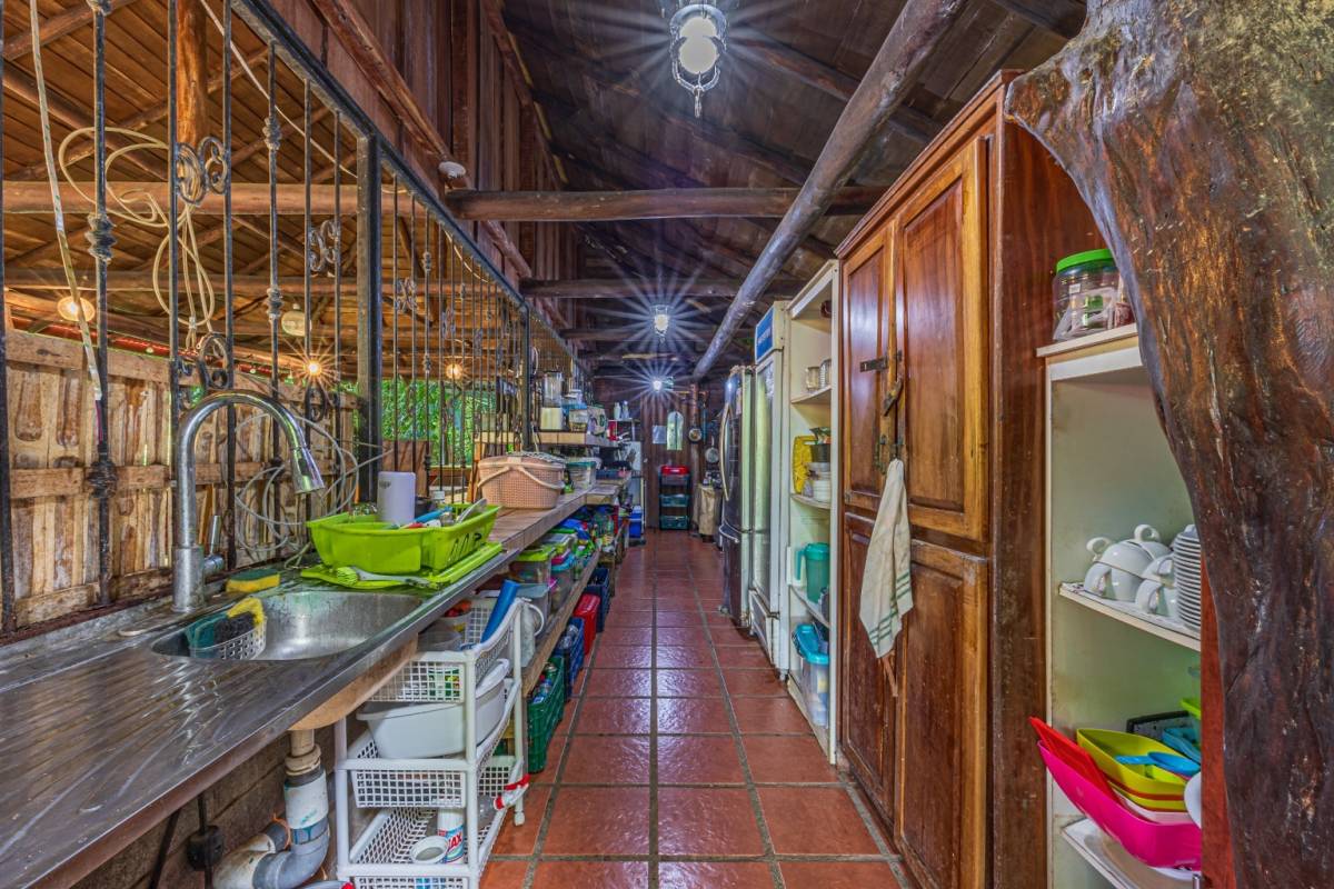 Servicios: La gran piscina de fibra de vidrio, de fácil mantenimiento, es un elemento destacado, con una amplia terraza amueblada con tumbonas y sombrillas, rodeada de plantas tropicales. Los monos suelen pasar volando, lo que realza la experiencia exótica. El área compartida para invitados incluye un baño con acceso al exterior y amplio espacio para una posible cocina y barbacoa al aire libre.