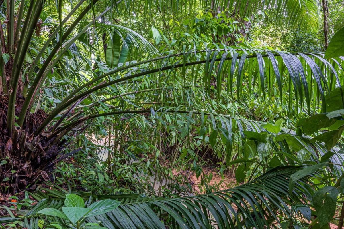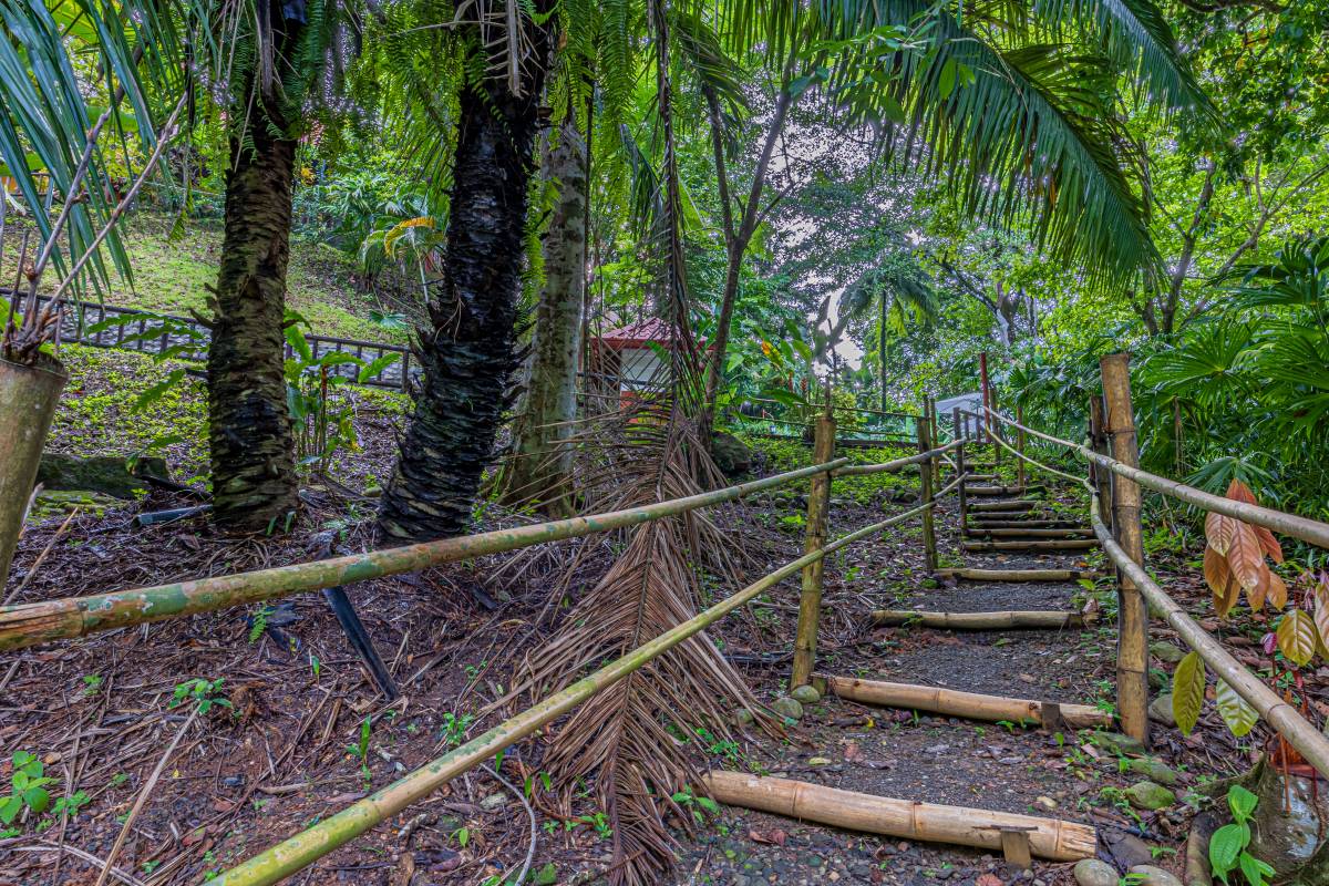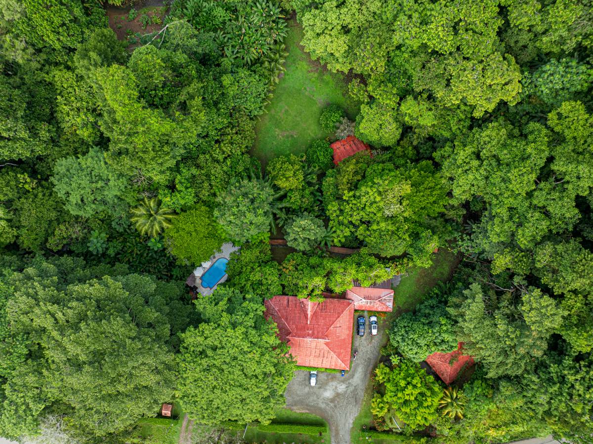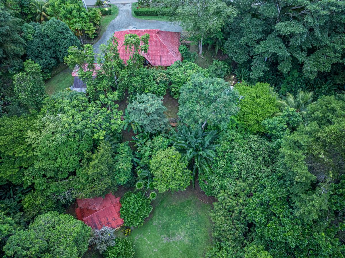 Servicios: La gran piscina de fibra de vidrio, de fácil mantenimiento, es un elemento destacado, con una amplia terraza amueblada con tumbonas y sombrillas, rodeada de plantas tropicales. Los monos suelen pasar volando, lo que realza la experiencia exótica. El área compartida para invitados incluye un baño con acceso al exterior y amplio espacio para una posible cocina y barbacoa al aire libre.