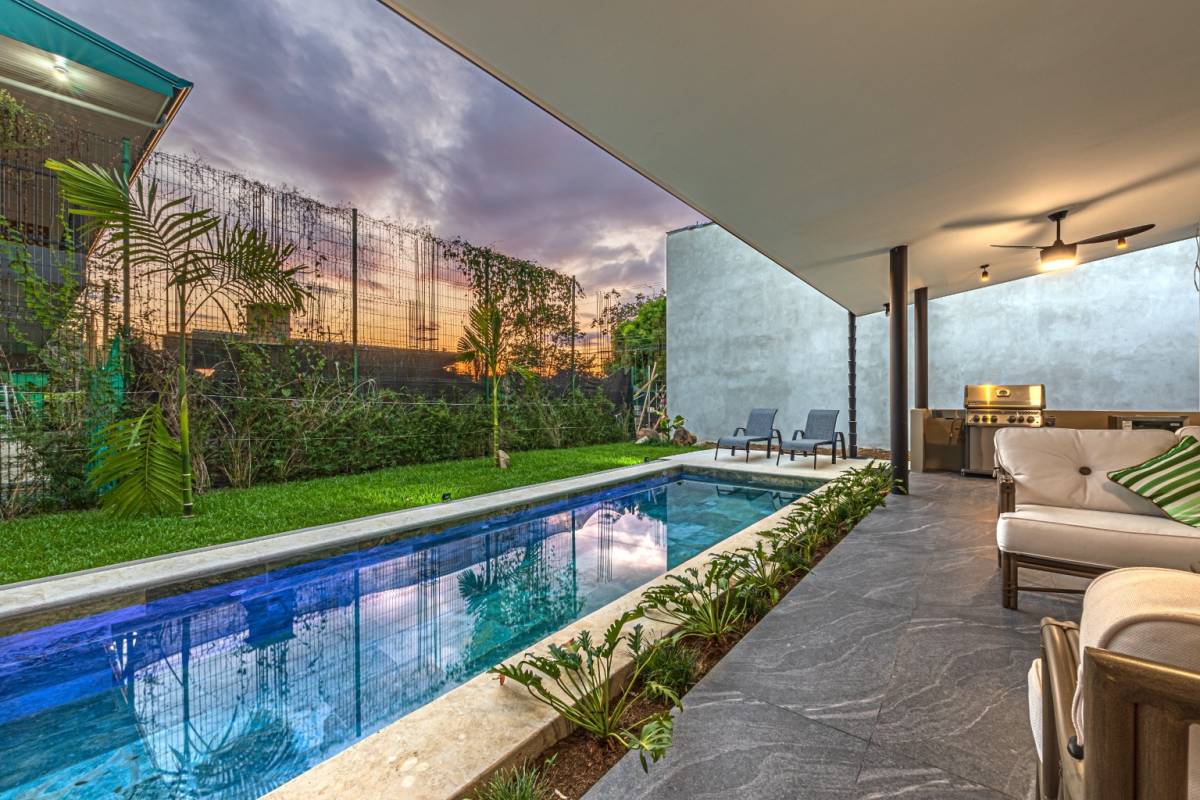 Cette nouvelle villa est équipée de climatisation dans chaque pièce, y compris le salon, d'eau chaude à chaque lavabo et douche, et d'un espace de rangement supplémentaire à côté de la salle de piscine.
