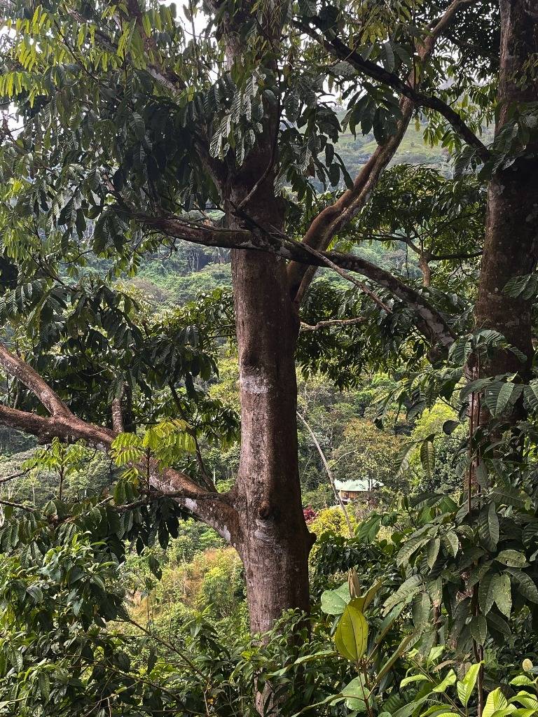 The open, panoramic views overlook lush valley floors and jungle-covered mountains on the horizon, providing a stunning backdrop for your everyday life. The fertile land offers ample space for cultivation, with mature fruit trees, bamboo groves, and generous pasture areas ideal for grazing or raising animals like horses.