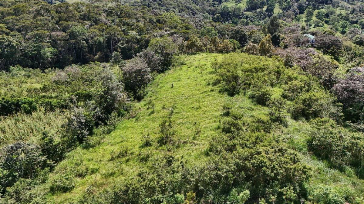 A naturally shaped building platform is already in place, offering stunning views of the surrounding mountains and jungle.