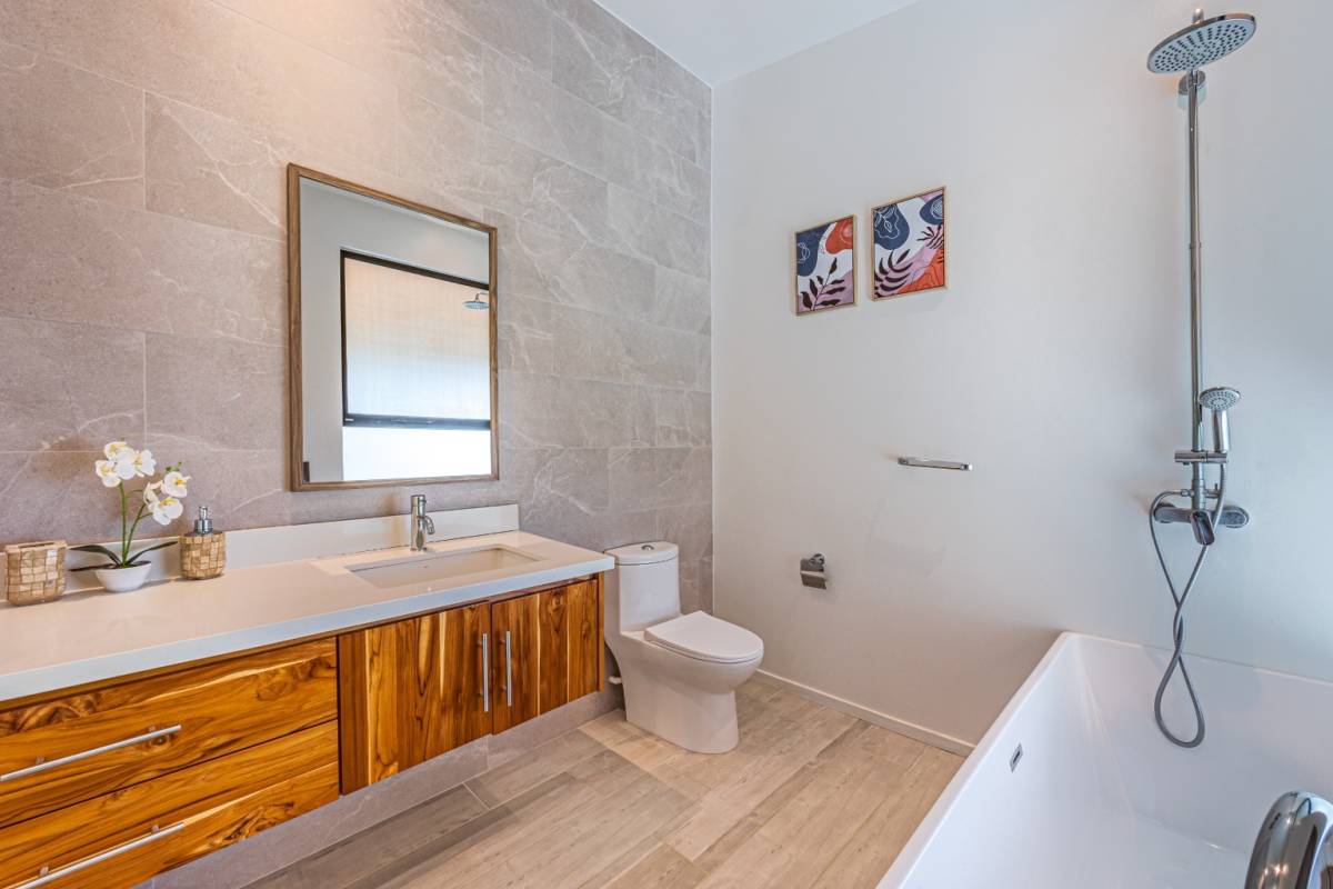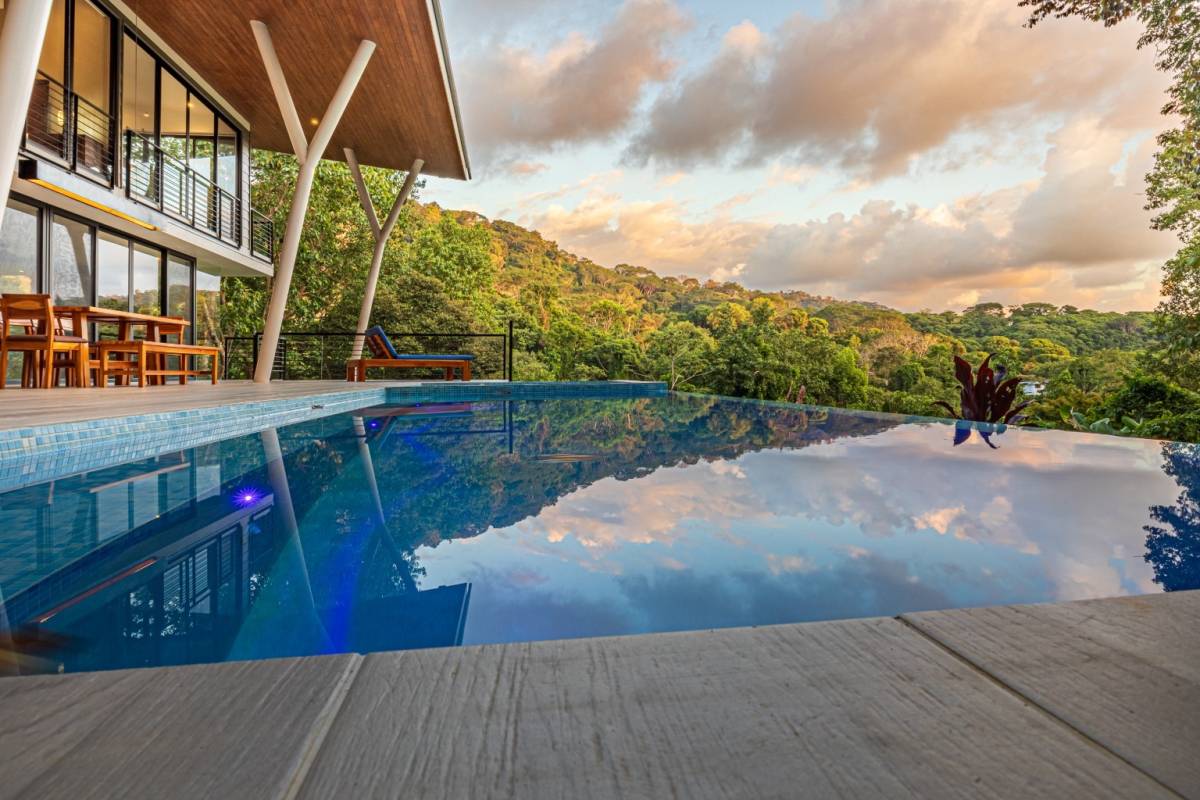 Unwind in the infinity pool or soothe your senses in the hot tub while listening to the gentle sounds of the jungle serenading you from below. The estate is fully private, gated, and nestled within a secure community, offering complete peace of mind.