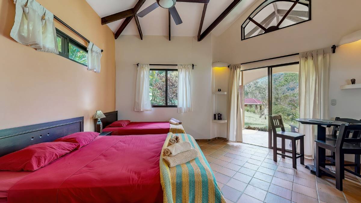 Situated atop a gentle hillside, 100 meters above sea level, and steps to the crystal clear and cool waters of the Uvita River, each of the six casitas boasts Mountain Views or jungle and garden surroundings, providing guests with a tranquil retreat amidst nature’s splendor. With two distinct floor plans comprising four guest suites and two studio apartments, all adorned with private patios, the accommodation promises both comfort and privacy. The spralling land will allow for expansion if so desried without risking the serenity that already exists.