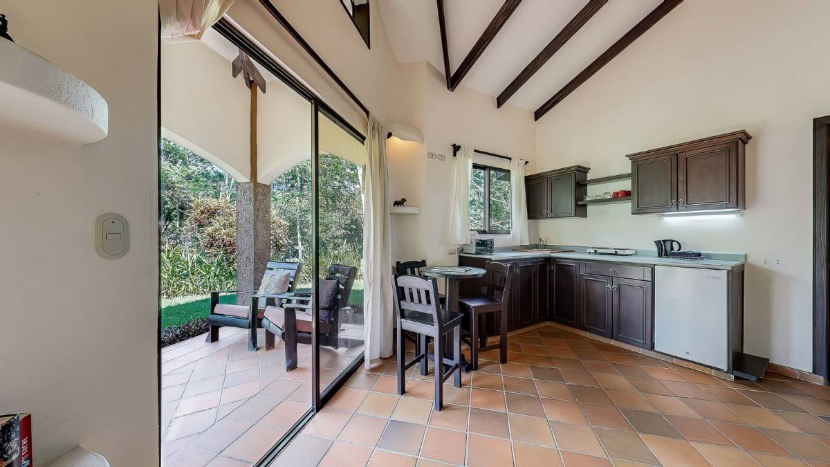 The owner’s suite, a spacious one-bedroom abode complete with a living room, expansive patio that can be easily converted to a second bedroom, and a generous kitchen doubling as a restaurant kitchen. Adjacent to this is the open-air Rancho, where guests dine and relax amidst the Mountain View vista, while enjoying complimentary WiFi connectivity.