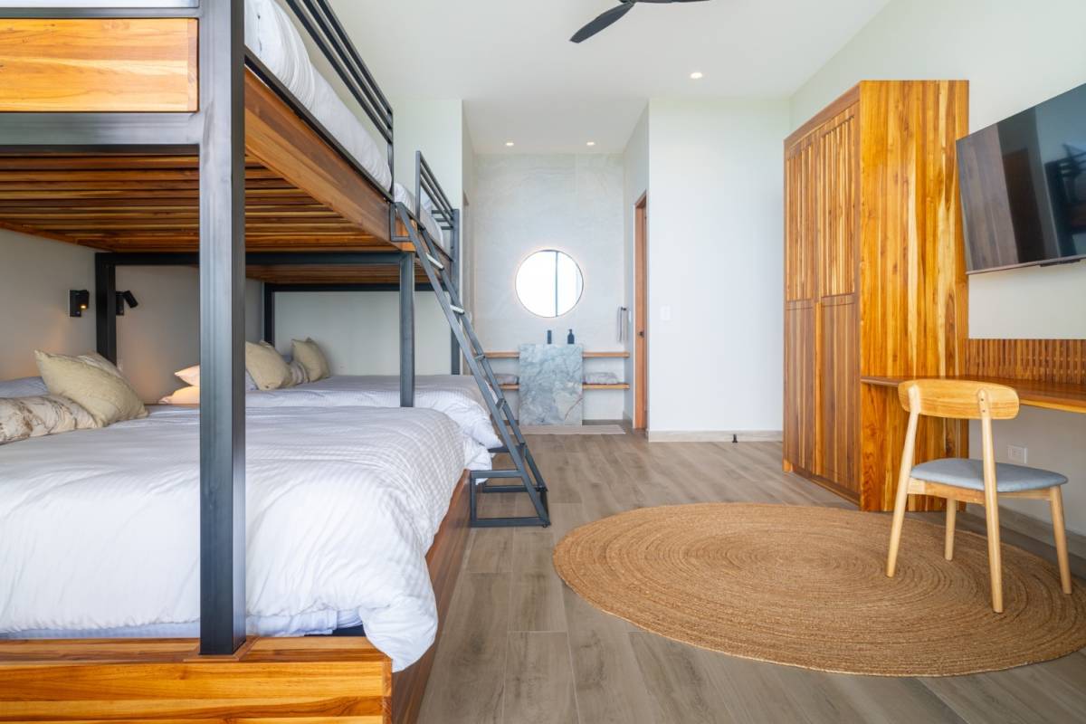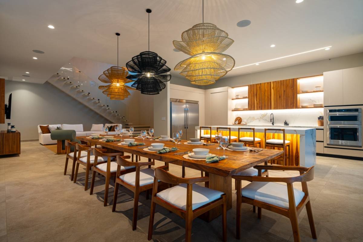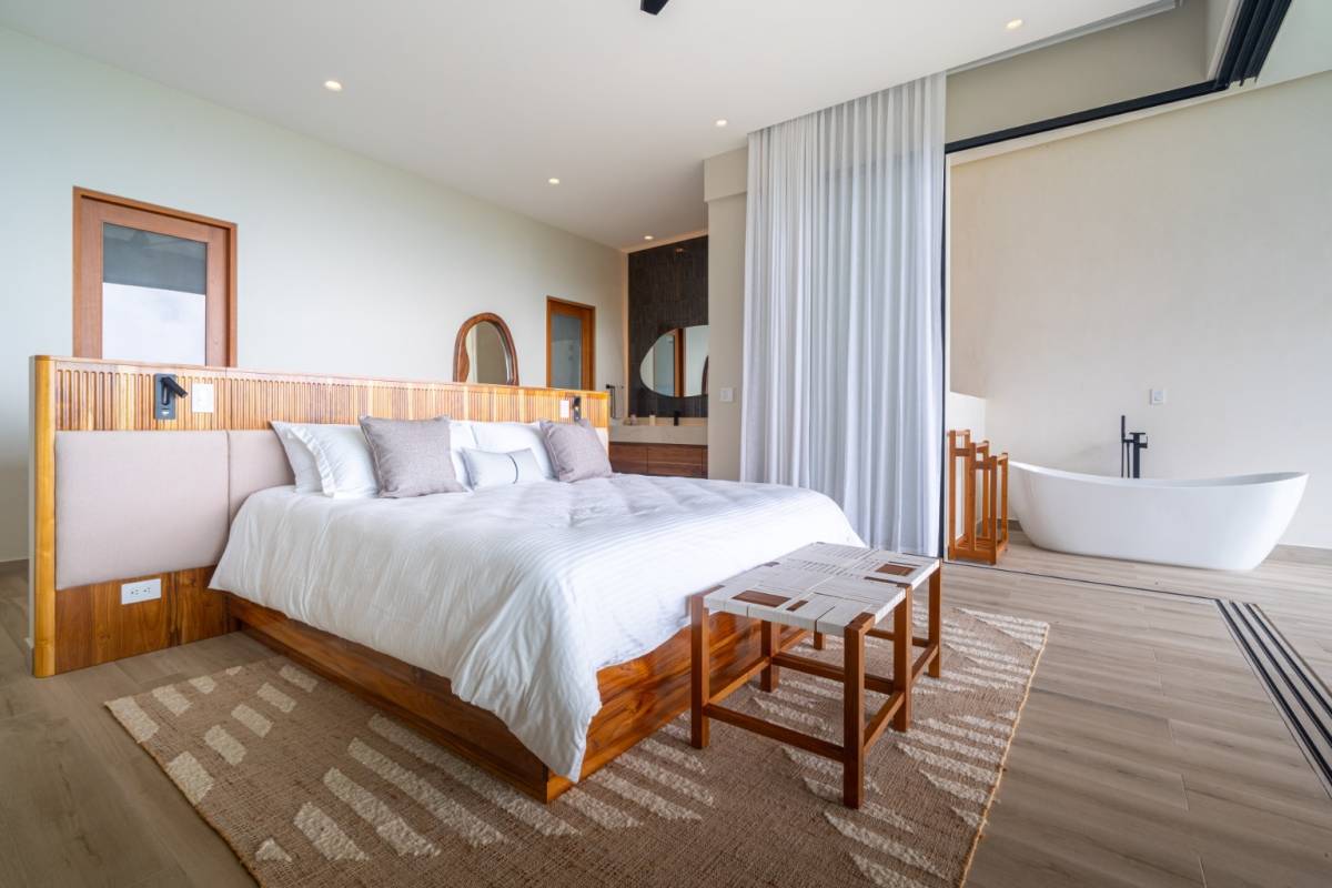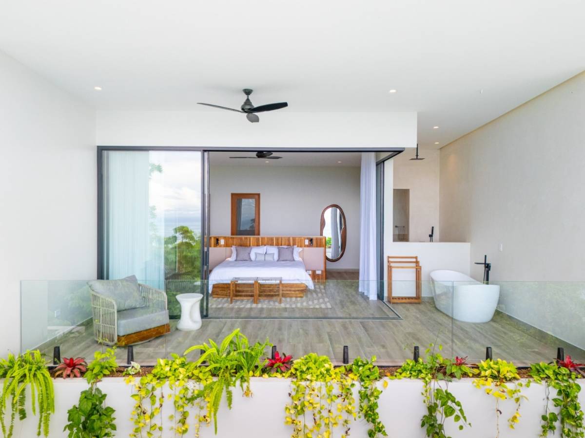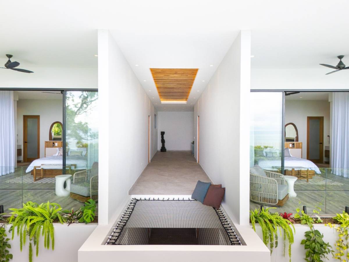 No expense was spared. Every piece of furniture was custom made in Costa Rica and Bali, with materials and fabrics chosen to endure the climate of the Southern Pacific. The villa is crowned with a standing seam insulated steel roof, built strong against rain and sun alike. Lush gardens, both inside and out, bring nature into every corner of the home, including a soaring second-level atrium.