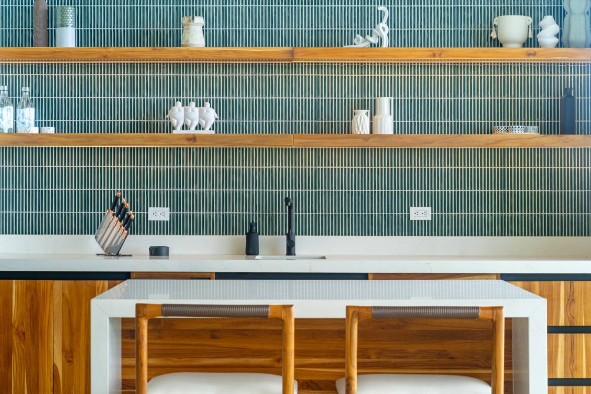 Every surface tells a story of excellence. Spanish anti-slip tile floors provide elegance and comfort underfoot. Electric custom shades move with quiet precision. At night, an LED lighting system transforms the home into a constellation of light, glowing softly against the rainforest backdrop.