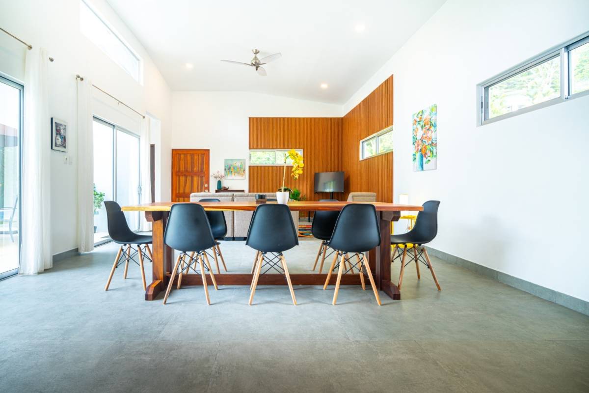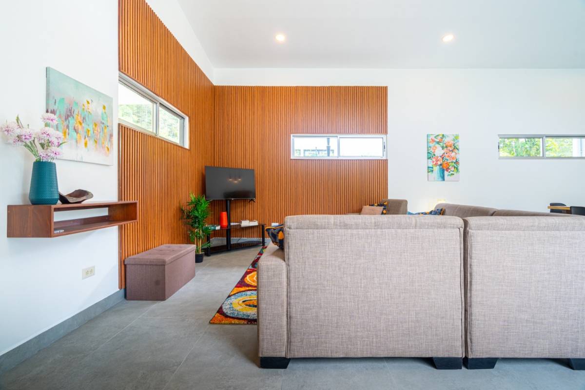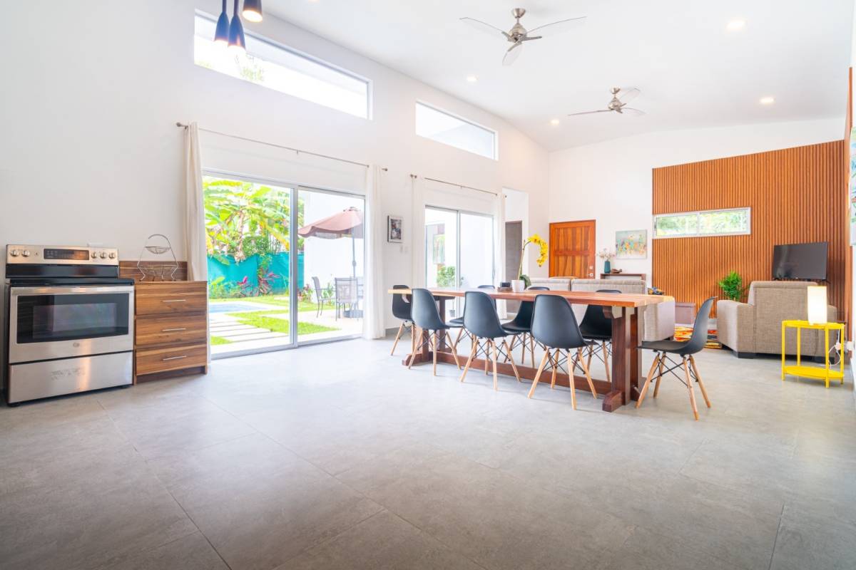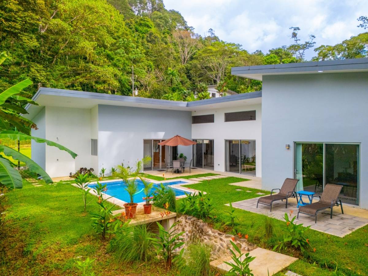 Outside, the property opens to a spacious front yard, a refreshing pool, and covered parking for two vehicles. The rear of the home borders a protected nature reserve, meaning no future construction behind you and daily wildlife encounters ranging from toucans and macaws to playful howler monkeys overhead.