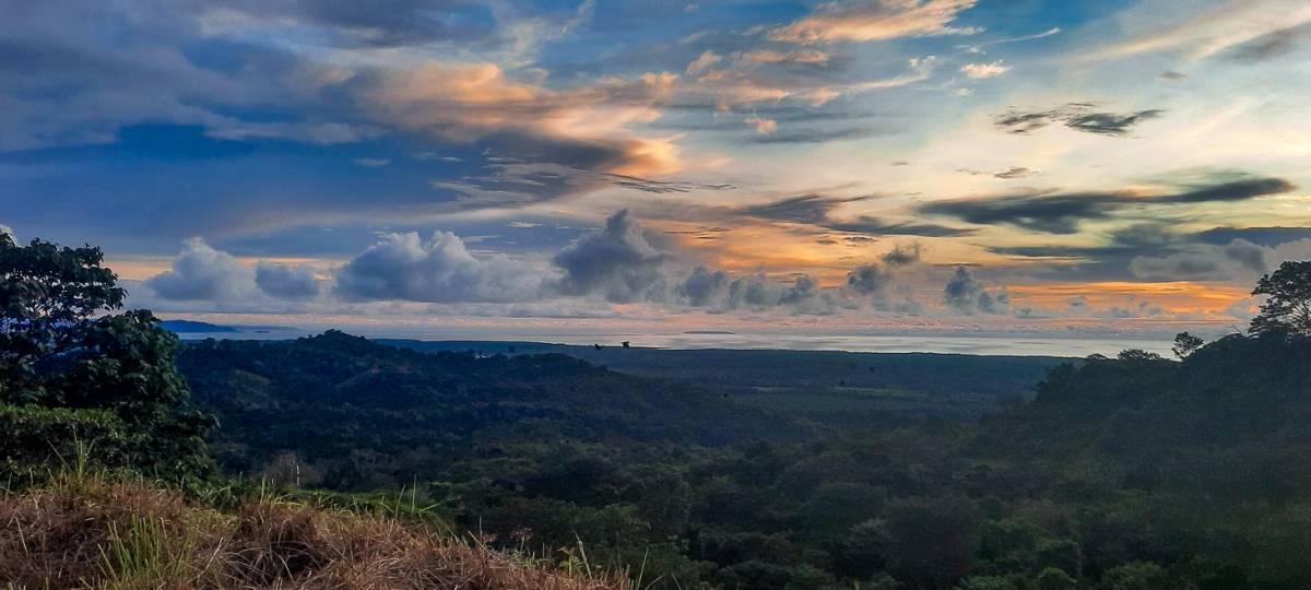 This is truly one of the best lots available in the Sueños del Trópico development. Set in the peaceful community of Chontales, this 2124 m² parcel (Lot 296) offers panoramic ocean views stretching all the way to Caño Island, the Osa Peninsula, and Drake Bay, with four river mouths visible on clear days. To the west, enjoy 10 months of jaw-dropping sunsets over the Pacific. To the east, your backdrop is a stunning ridgeline of green mountains—a perfect balance of valley, ocean, and jungle vistas.