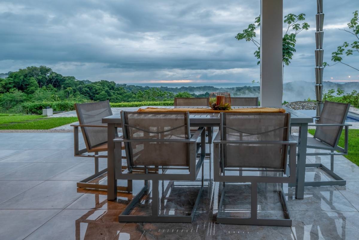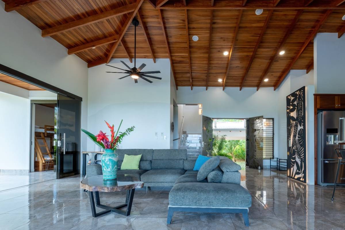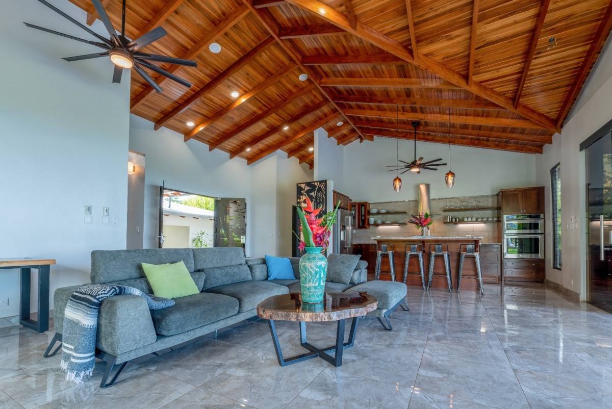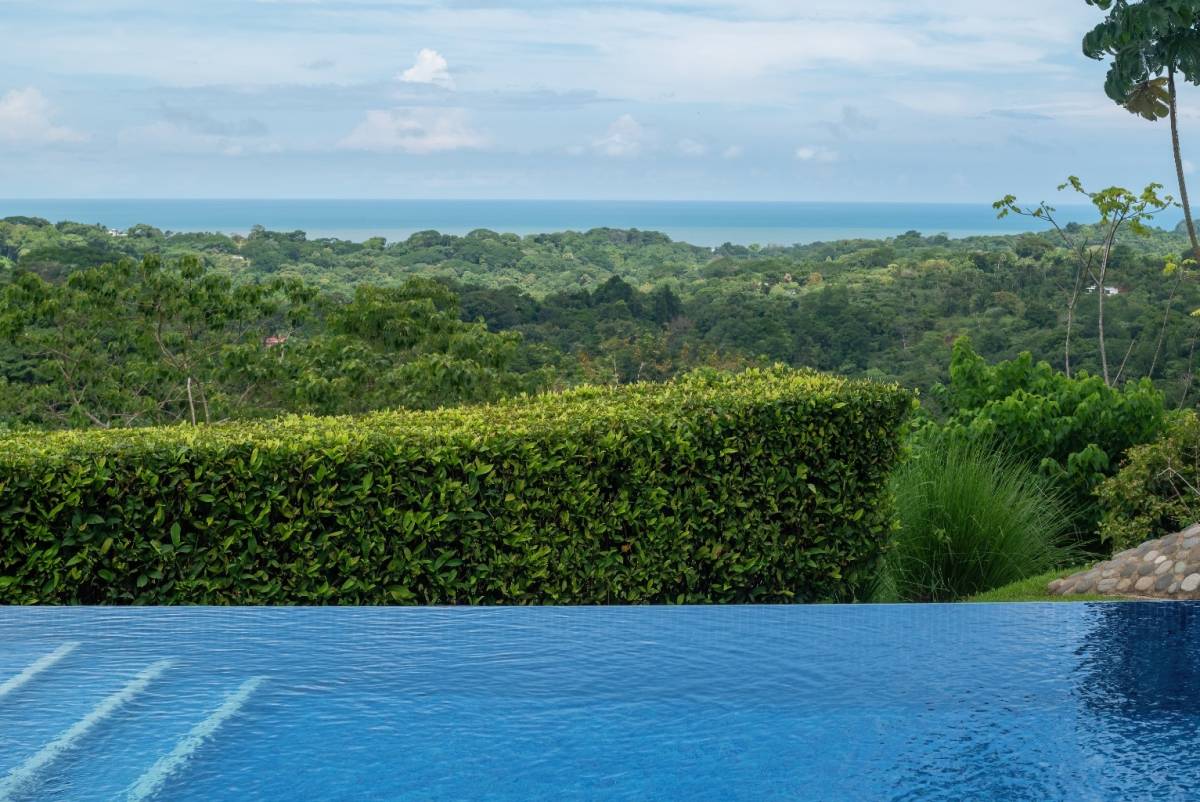 Nestled in the prestigious, sought-after community of Ojochal, Costa Rica, this exquisite residence offers an unrivaled blend of sophistication and natural beauty. Step through a lush, tropical garden entrance, where vibrant foliage guides you to the home’s grand entryway. Here, a curated selection of fruit trees—including lime, lemon, banana, avocado, apple pear, and mango—adds both charm and abundance to the landscape. Elegant floor-to-ceiling glass doors then unveil breathtaking panoramic ocean vistas, setting the tone for the refined experience within.