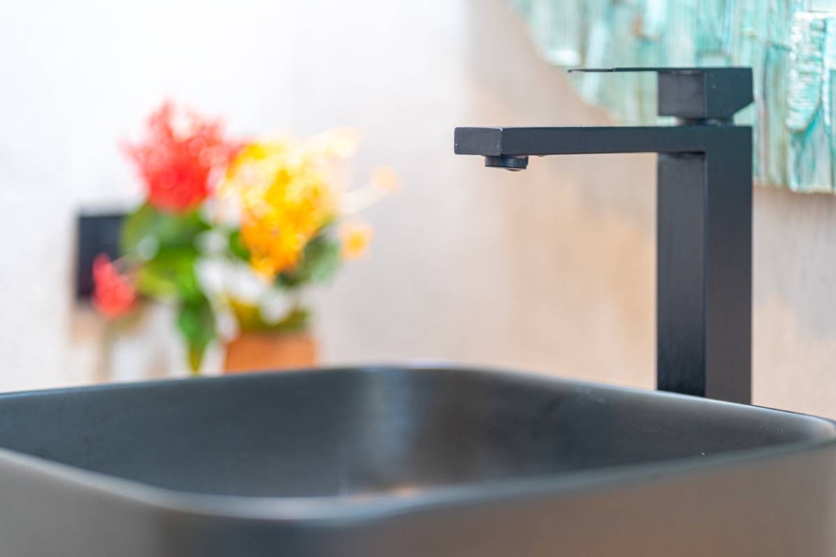 Upon entering, the property captivates with the mature landscaping, and stepping inside the home reveals an expansive outdoor area adorned with beautiful black trim doors and beams that harmonize with the natural teak ceilings. The selection of the elements has be meticulously curated, including Coralina, a breathable natural stone enveloping an oversized pool – a true oasis. Take a dip into the elevated tub for a refreshing natural bath, surrounded by the soothing sound of a cascading waterfall.