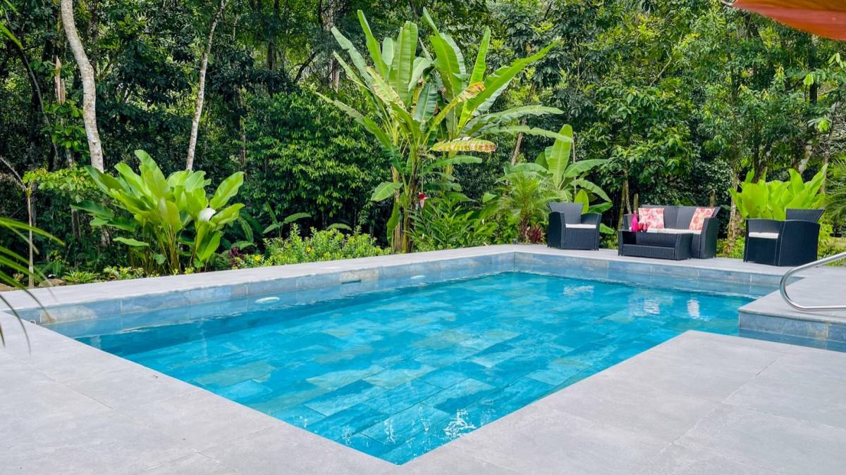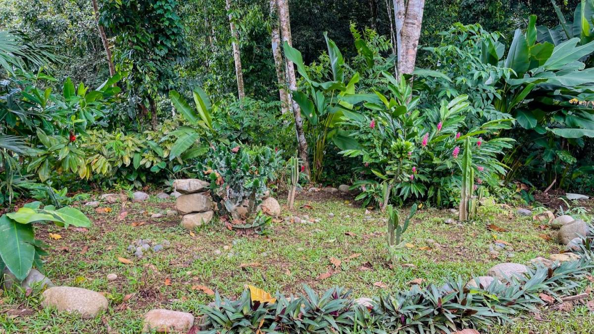 A covered terrace leads to the private pool, surrounded by tropical foliage and the sounds of the jungle. With approximately one acre of land, there’s space to expand gardens, plant more fruit trees, or simply enjoy the peace and privacy of your own corner of paradise. The property borders a small creek, adding to the tranquil atmosphere and inviting local wildlife like toucans, monkeys, and butterflies to visit daily.
