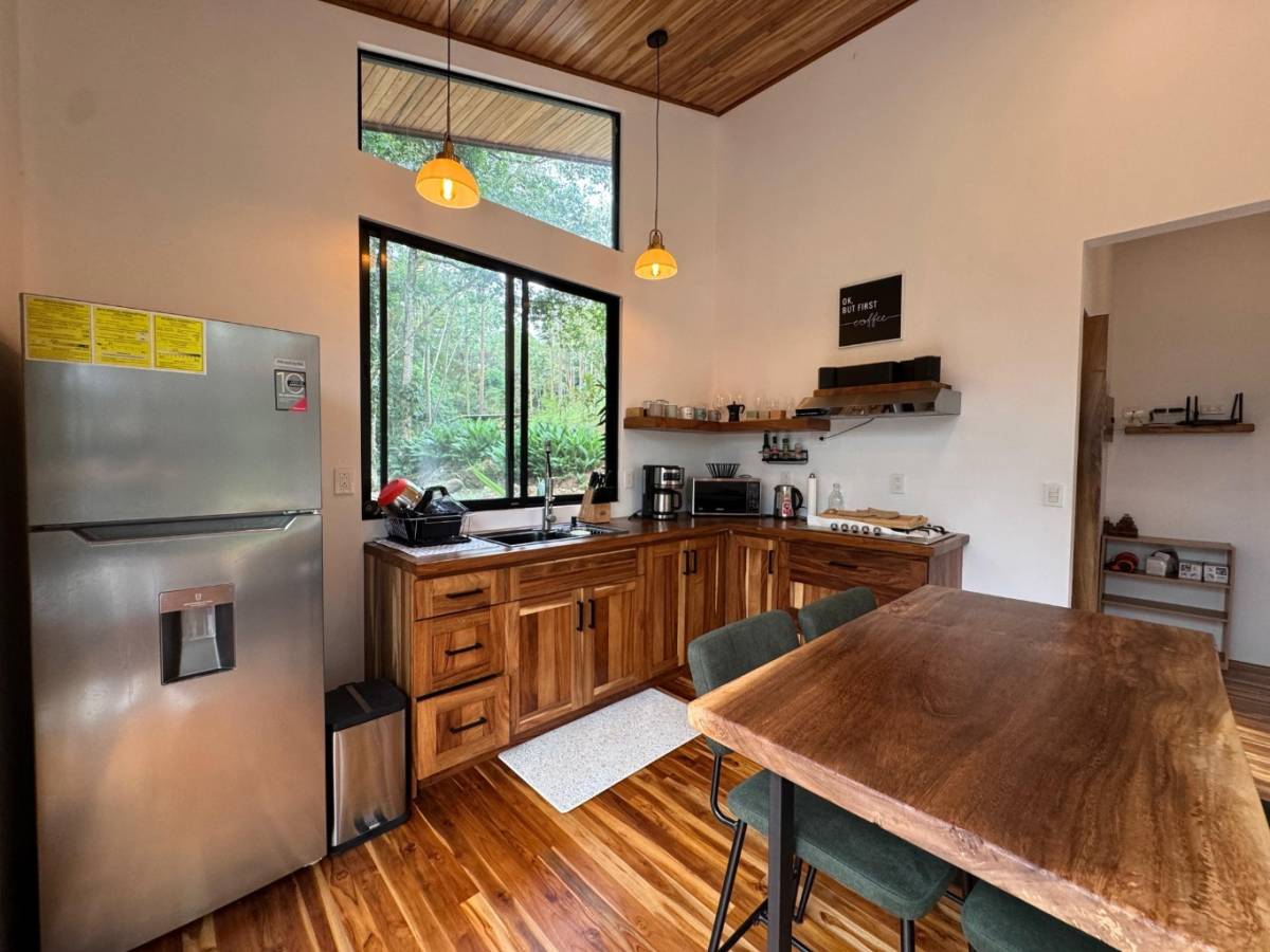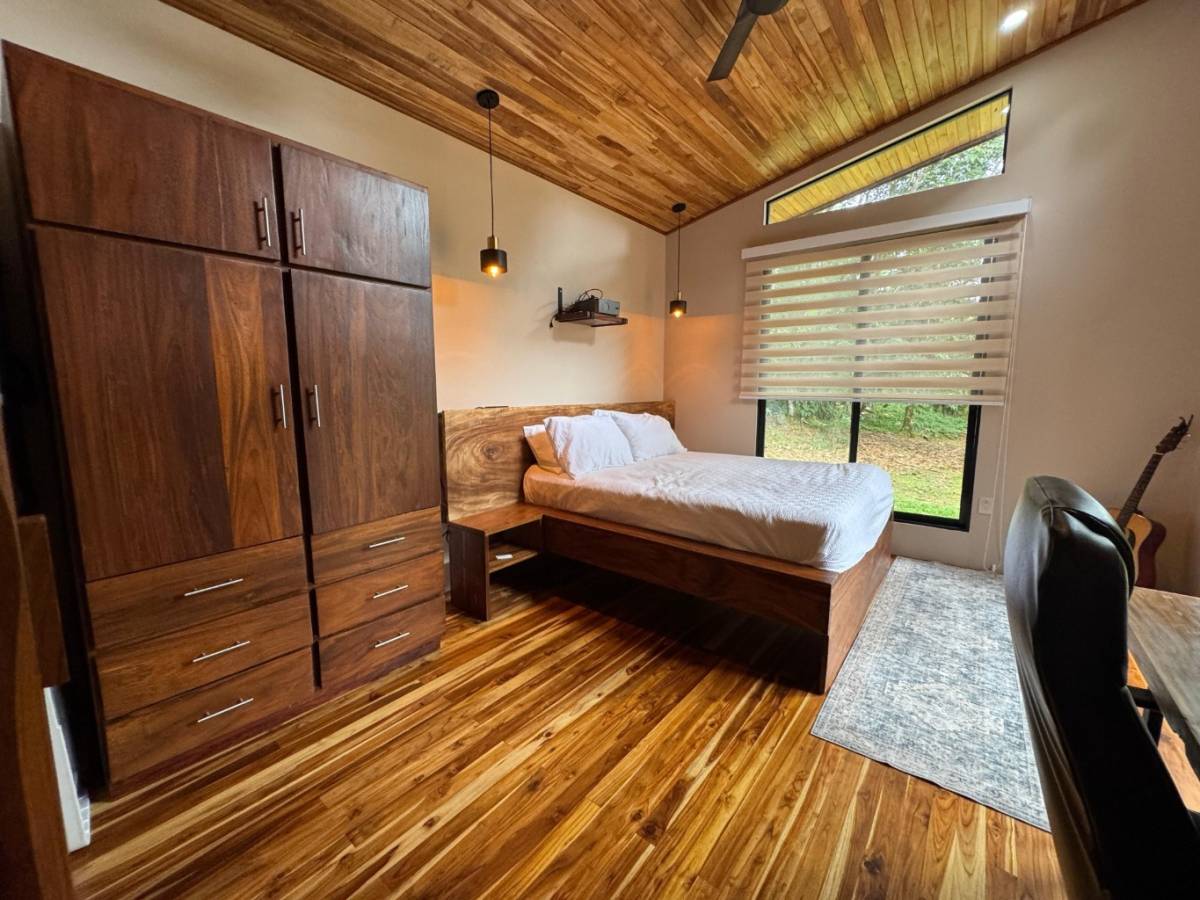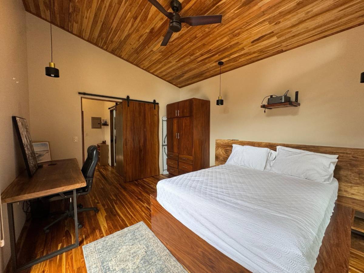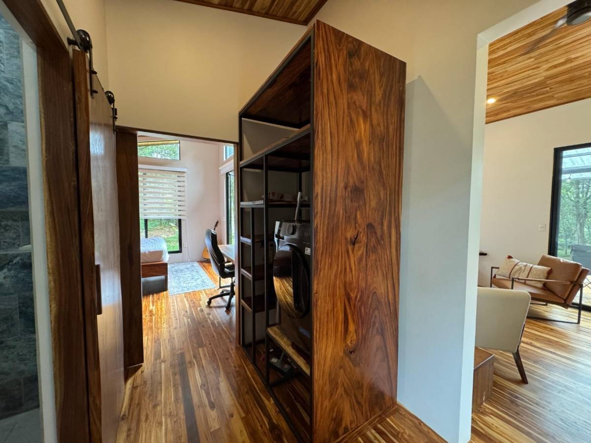 Luxury cabin: 52 m² (560 sq. ft.), solid block construction with treated teak wood ceilings and flooring, and custom-made furniture crafted from precious Guanacaste wood.