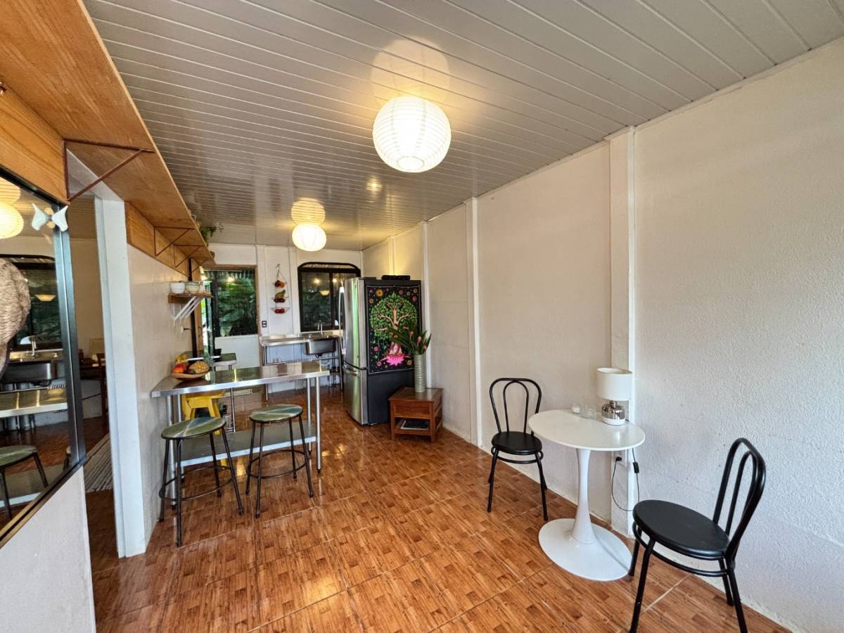 The kitchen is bright and functional, with stainless steel counters, open shelving, and views of lush greenery right outside your window. Bedrooms are peaceful retreats, while the bathroom brings in natural light and fresh air for a simple yet refreshing start to the day.