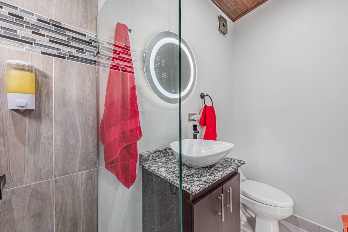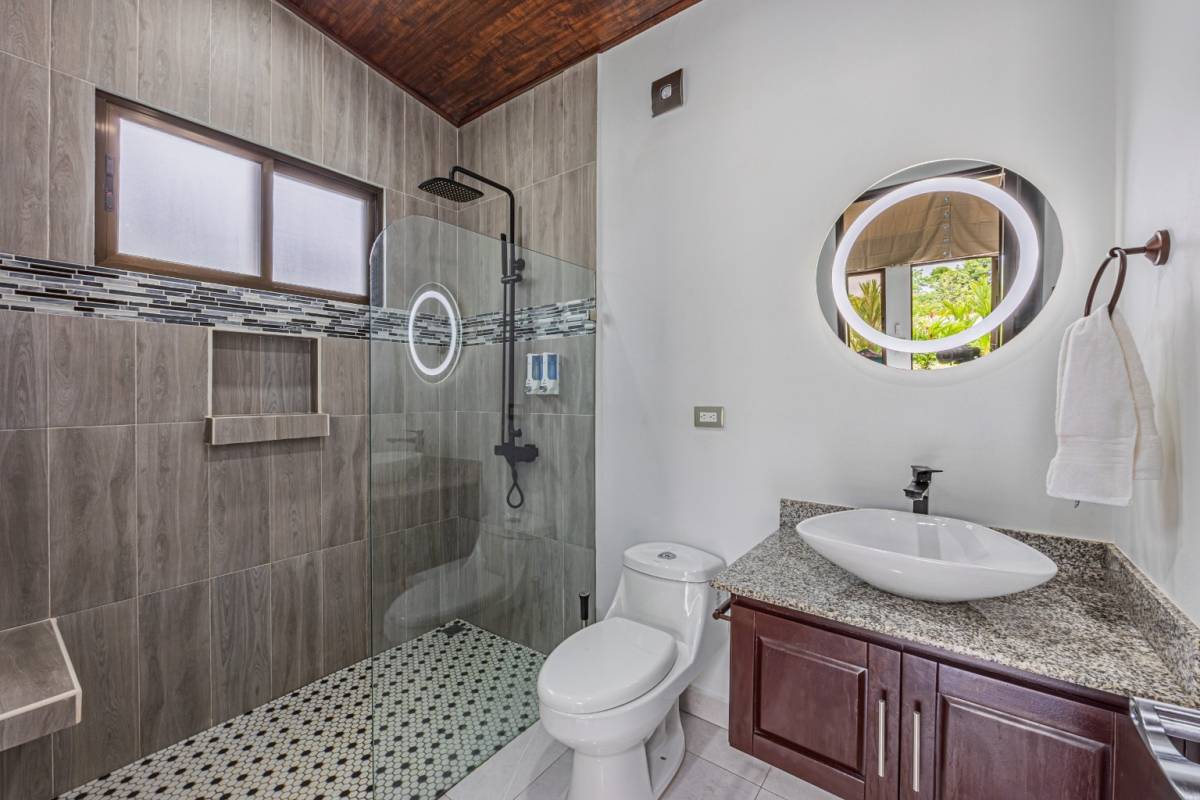 Spanning 1,432 m² of lush land, Shalom Chamo Villas offers ample green space and the potential to add up to two more villas, making it an excellent investment opportunity. There’s parking for six vehicles, and easy access to the property without the need for a 4×4 vehicle. The location is ideal, with Uvita’s center just one mile away, offering supermarkets, restaurants, medical services, and more. The stunning Playa Hermosa beach is only a mile away, and local waterfalls and the famous Whale’s Tail Sandbar are just a 10-minute drive.