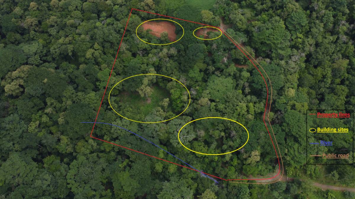 The land features over 100 meters of public road frontage. Gently sloped and dotted with flat building areas, it’s perfectly suited for a variety of uses—your private jungle retreat, a riverfront eco-lodge, or a combination of main home, rental bungalows, and staff house.