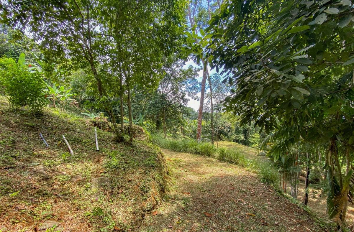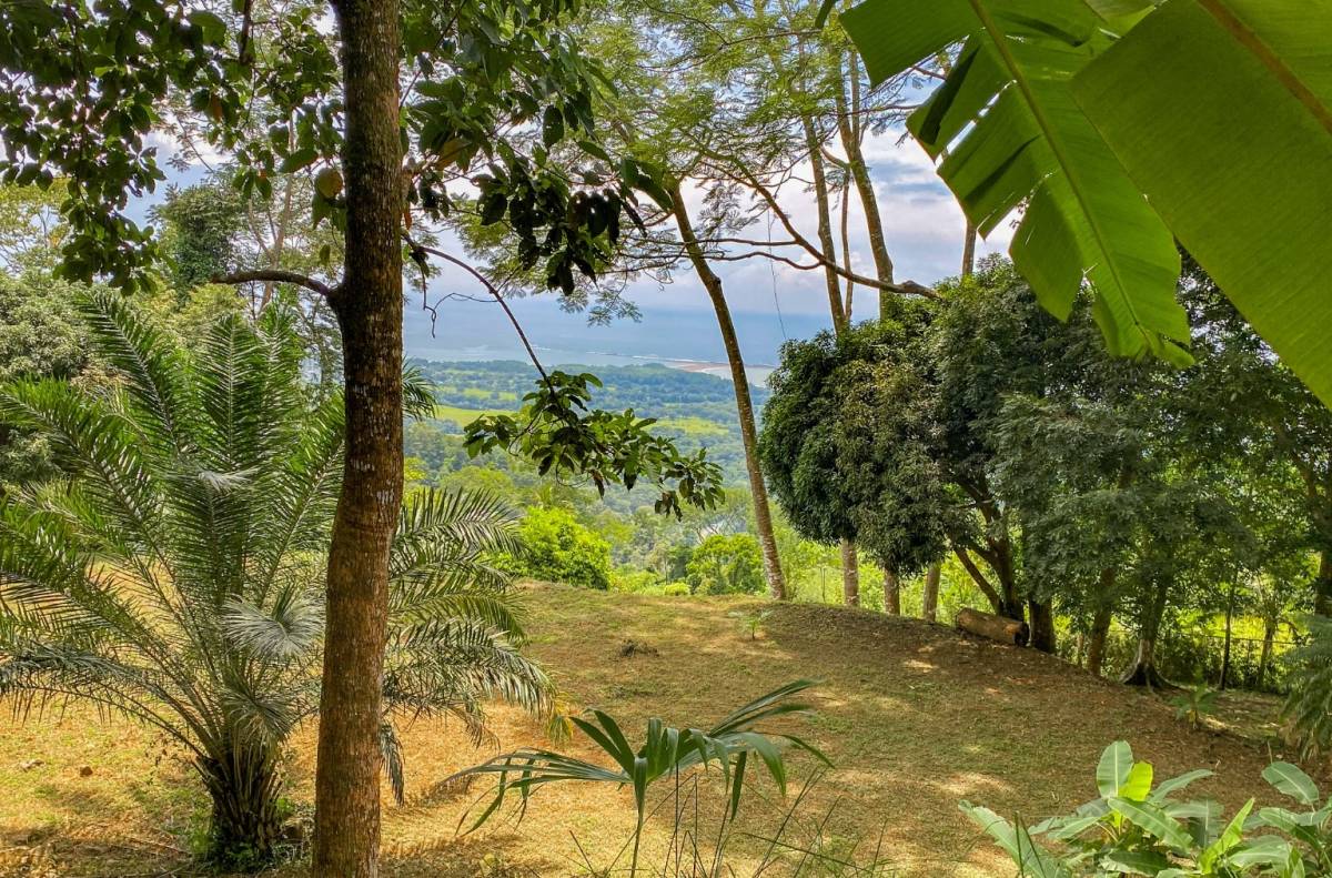 The large 1.4 acre lot sits 320 meters or 1050 feet above the nearby Pacific shores. This elevation and hilly surrounds guarantee cooler air, more comfortable days and refreshing mountain breezes (not to mention the views)! Many majestic, towering jungle trees dot the property. The lot is green, lush and private – a serene oasis so close to the bustling Uvita!