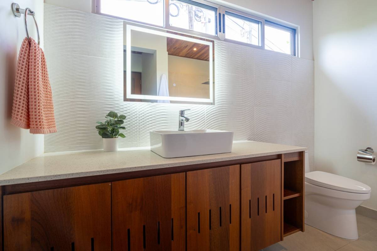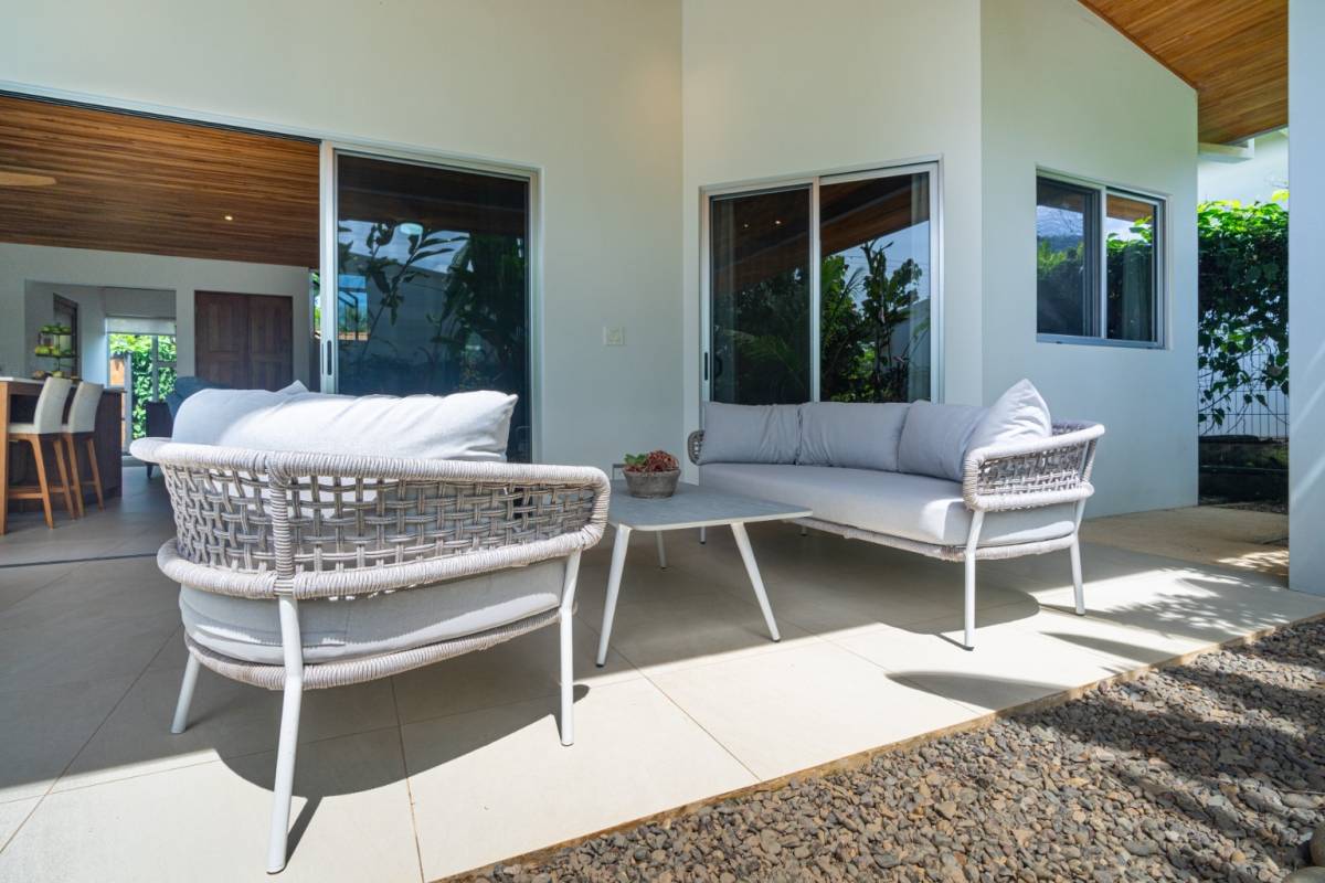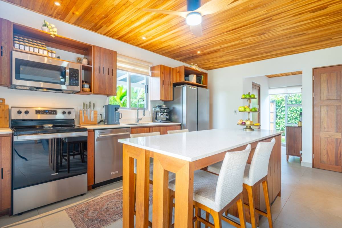 This contemporary three bedroom home blends refined design with everyday ease. Perfectly positioned on a paved road in the center of town, it offers effortless access to a coffee shop, restaurants, and local markets… while still feeling tucked away amid lush greenery and privacy.