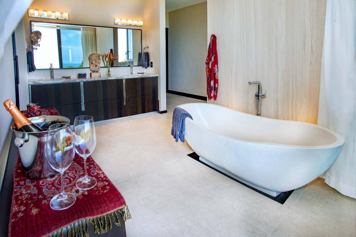 Inside, the home is designed with spacious luxury in mind. All four oversized bedrooms are well-appointed and offer ensuite bathrooms for ultimate comfort and privacy. The principal suite, located on the second floor, features commanding ocean views that transform the waking hours into an unforgettable experience. One of the guest bedrooms offers private exterior access, making it ideal for visiting friends, family, or extended stays.