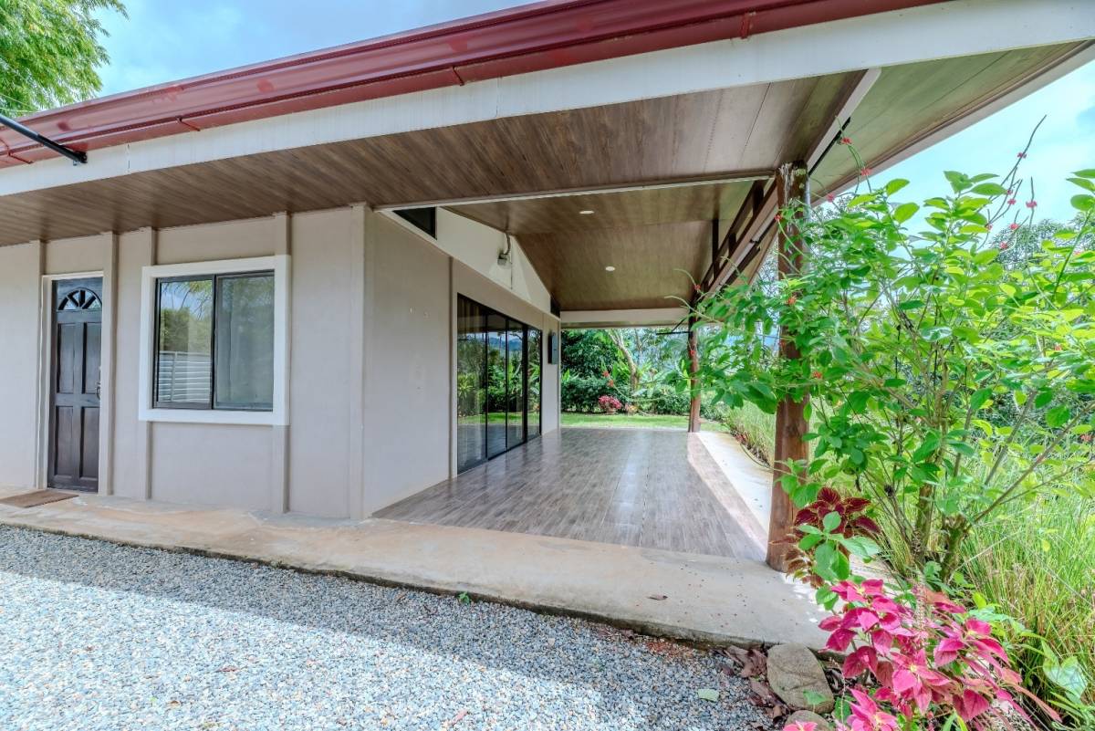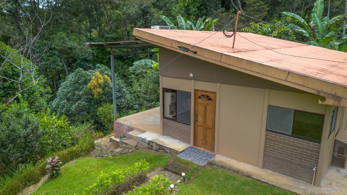 The fourth unit is a charming Costa Rican-style house with its own entrance, manual gate, and two-car carport. It includes two bedrooms, one bathroom, and a well-maintained garden with flowering plants that attract butterflies, hummingbirds, and other local wildlife.