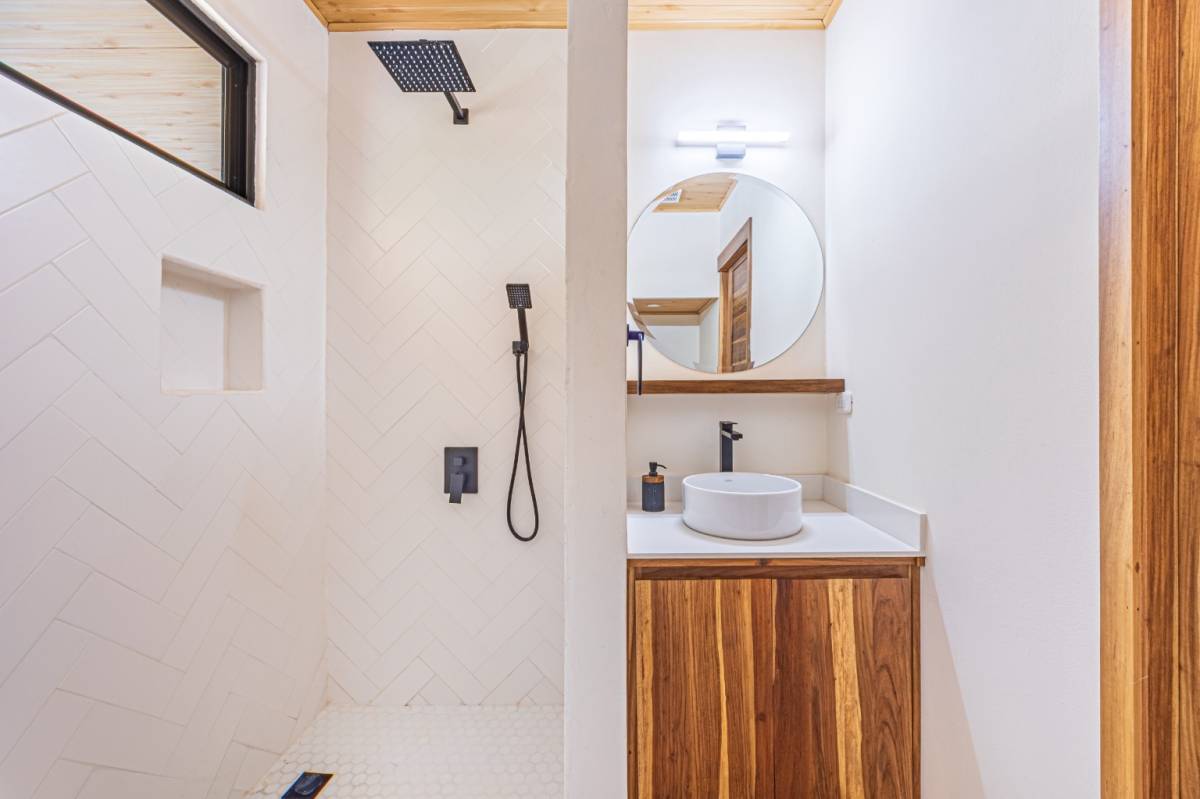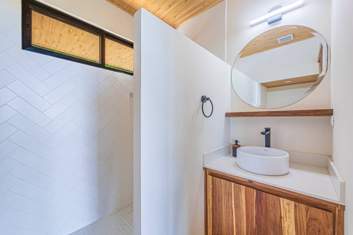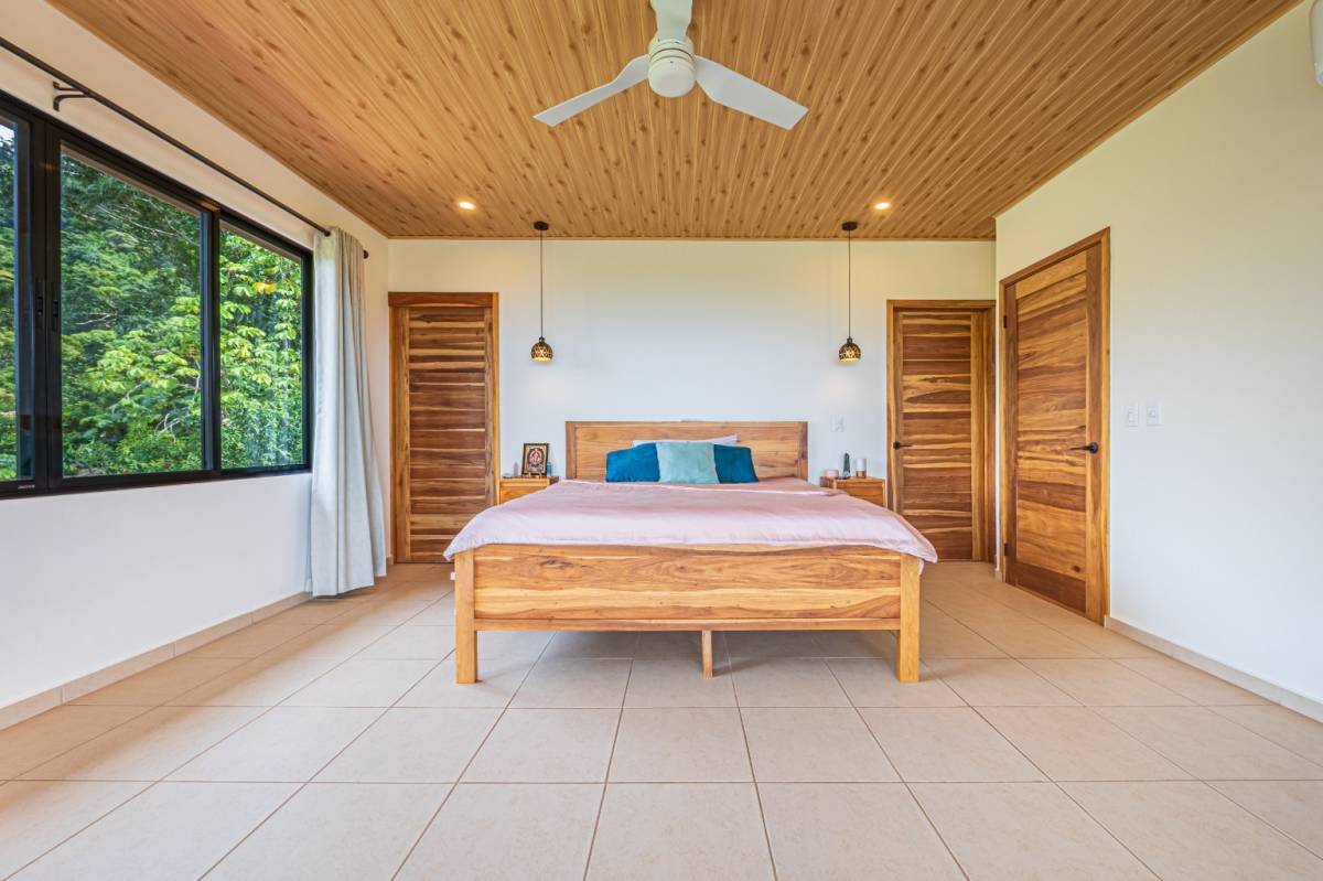Terminada en 2023, la casa ha sido diseñada pensando en la comodidad moderna y el estilo de vida tropical. En el segundo piso encontrarás dos amplias habitaciones, cada una con su propio baño, ventilador de techo y aire acondicionado. Ambas disfrutan de impresionantes vistas al océano, incluyendo la Isla del Caño y una vista parcial de la famosa Cola de Ballena. La suite principal también cuenta con vestidor y un gran balcón privado para disfrutar del paisaje.