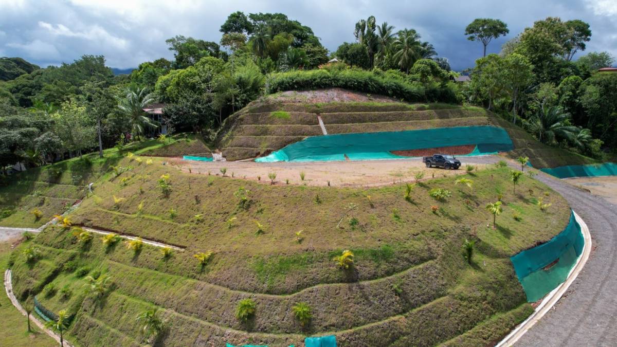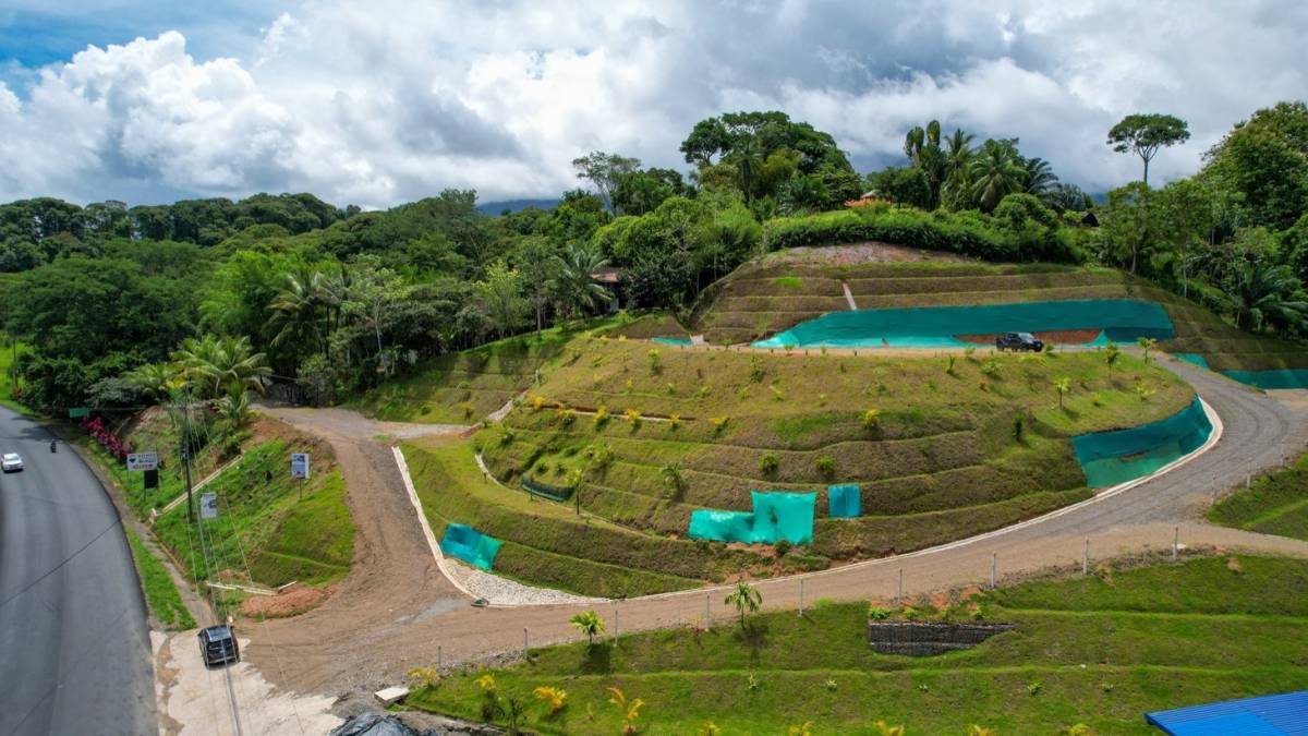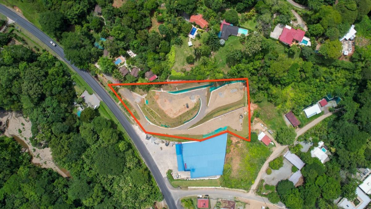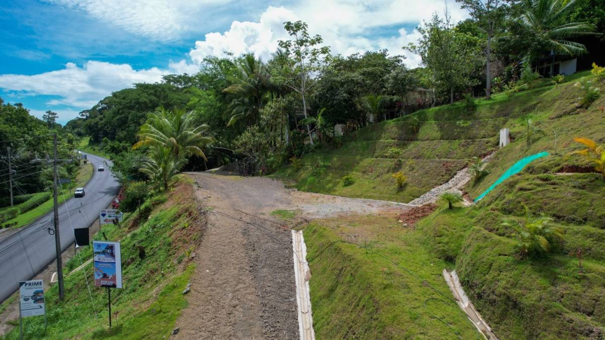 Perched above the Costanera Highway at the entrance of the vibrant and growing town of Ojochal, this 2-acre property is full of potential for a dynamic community-centered business. With three large, pre-developed building pads offering sweeping mountain views—and the potential for ocean views from a second story—this is an ideal canvas for your next commercial venture.