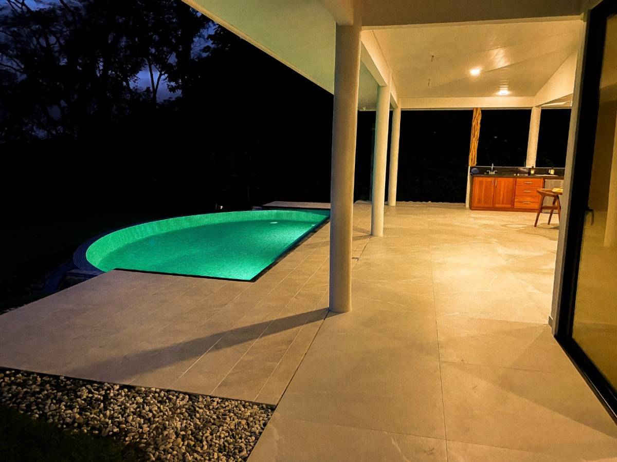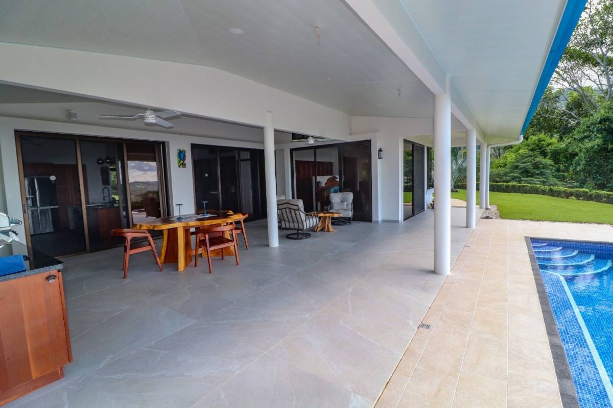 This brand-new home is a triumph of openness, convenience, beauty and design. The sturdy construction sits on a secure concrete pad with elegant marble cladding while the gorgeous Guanacaste lumber fit-outs bring warmth and refinement. The house is surrounded by parkland-like yards, tended hedges, and tropical trees & shrubs.