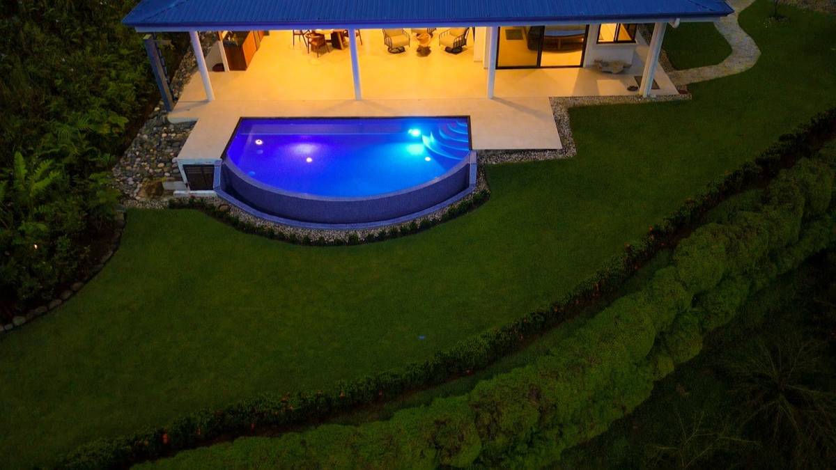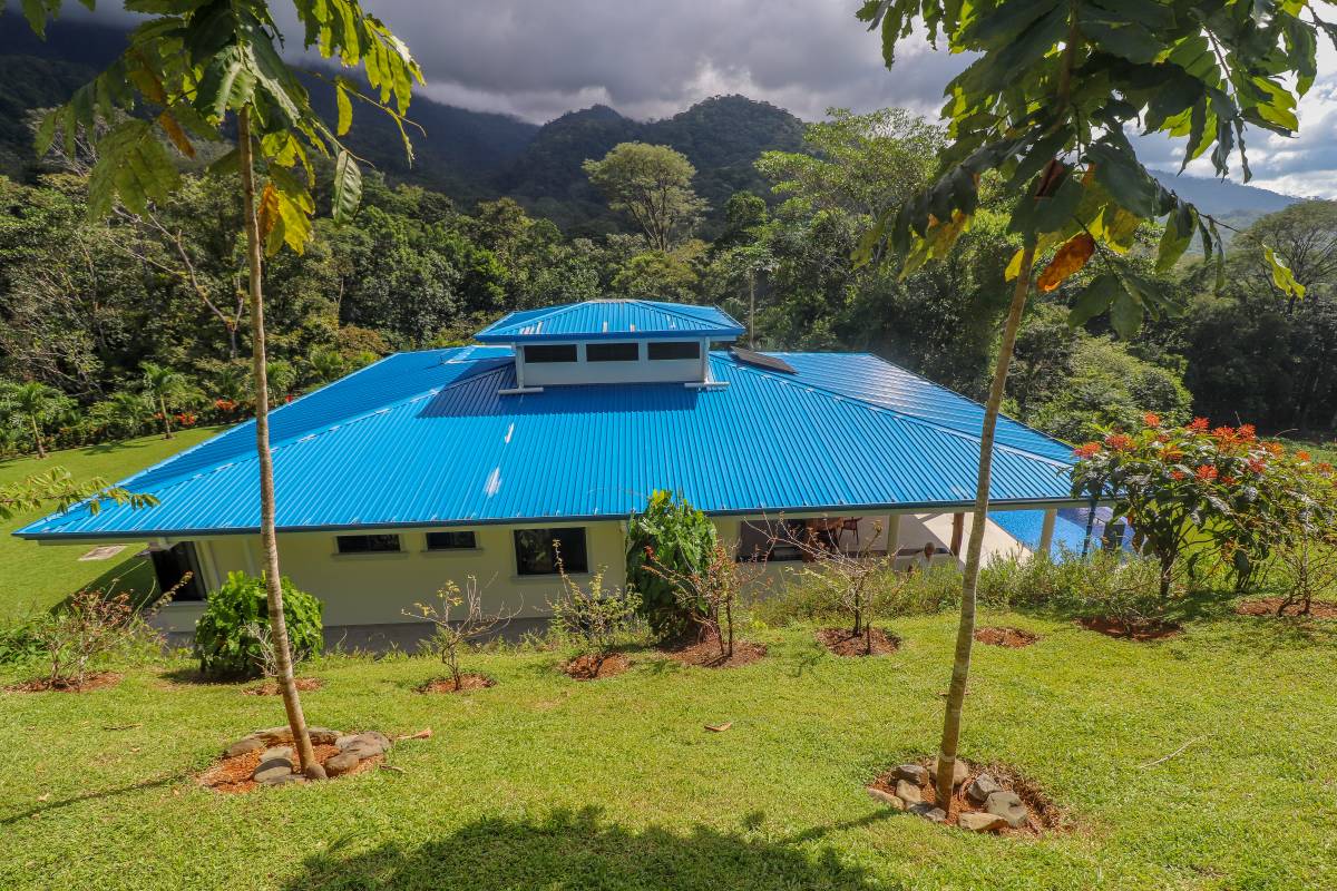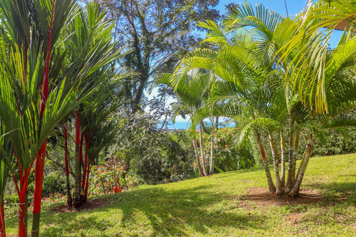 The property stretches across a hill which overlooks the surrounding mountains, valleys, jungles and the Pacific Ocean. Elevated 180 meters or 600 feet above the Pacific, the house benefits from a cooler climate, refreshing mountain breezes and, of course, spectacular views.
