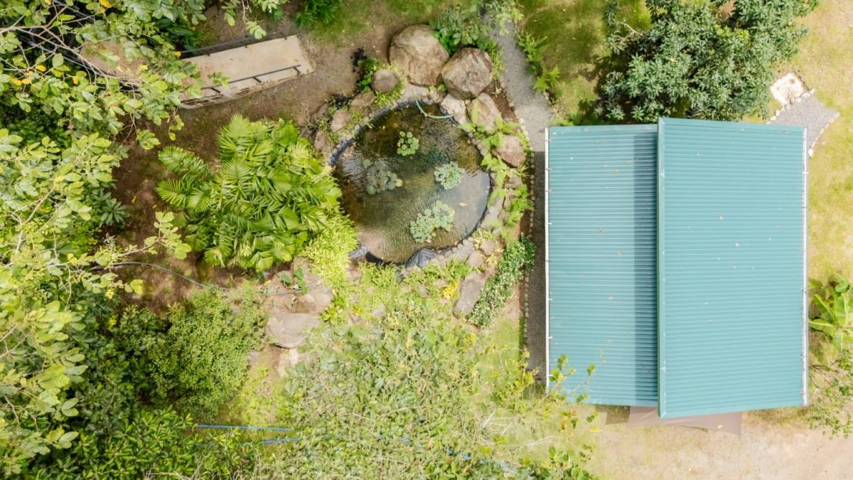 At the heart of the property, a breathtaking 30-foot waterfall spills into your private river, crossed by a pedestrian suspension bridge. Multiple serene ponds reflect the sky, and established hiking trails wind through fertile gardens, mature fruit orchards, and five acres of thriving reforestation — now in its third year — planted with over 1,000 native trees from 13 species to restore vital wildlife corridors.