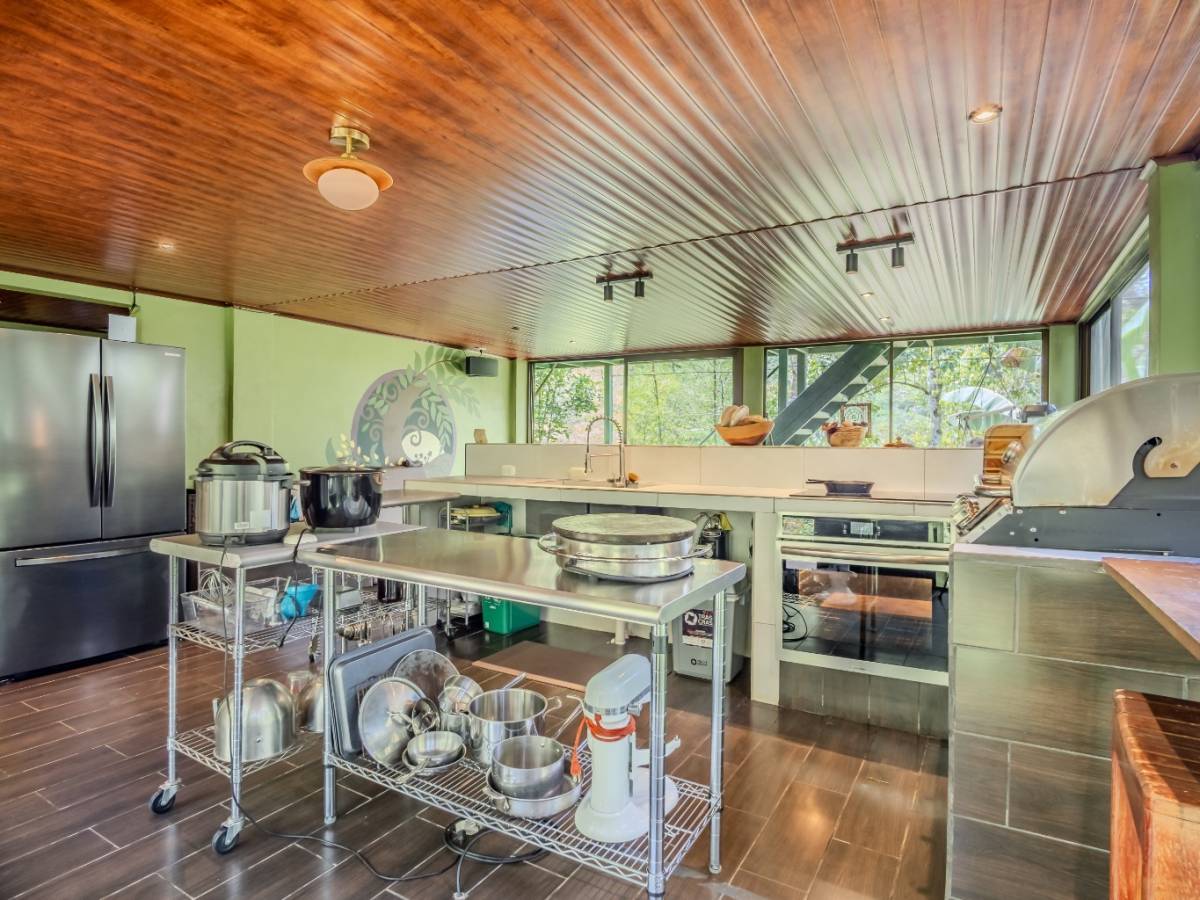– Main home: 2,300 sq ft, 2 bed / 1 bath, remodeled in 2022, with direct waterfall views, jacuzzi, dry room, and an open-air chef’s kitchen. Equipped with a Cuisinart Gallery Collection oven with multifunction capabilities including steam bake, air fry, and convection bake, plus a 4-burner induction cooktop and propane grill. Additional café kitchen on the main floor.