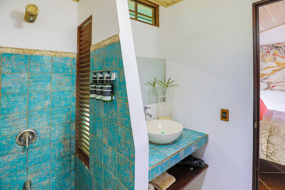 Behind the owner’s home is the 4th cabina which is a studio bedroom with A/C and its own on-suite bathroom. This is a handicap accessible unit which is required by Costa Rica law for an operational hotel business. The current owner only rents this room occasionally and primarily have used as a private guest room when friends visit.
