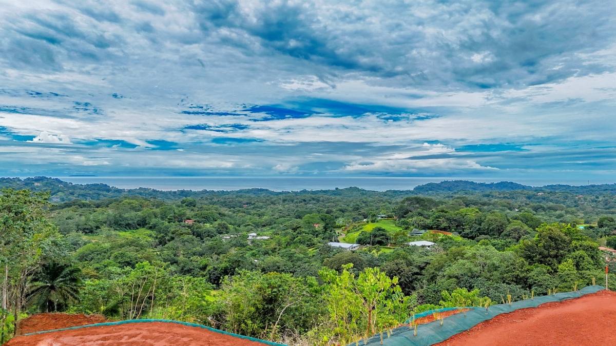 The neighboring lots straddle a dramatic ridge that juts away from a well-maintained public road, creating the sensation of floating above the jungle canopy. To either side, lush valleys and forested hills descend toward the Pacific, framing panoramic views of Caño Island, vibrant sunsets, and the shimmering coastline. Behind the property, the Talamanca Mountains rise over 1,000 meters (3,300 feet), cloaked in ancient jungles and cloud forest. Seasonal waterfalls cascade down their steep cliffs, adding to the visual drama.