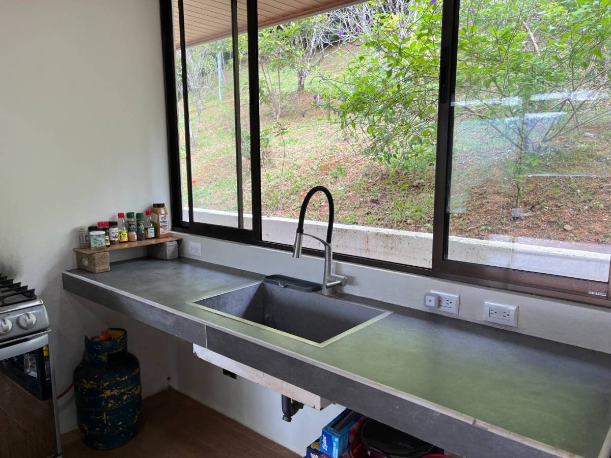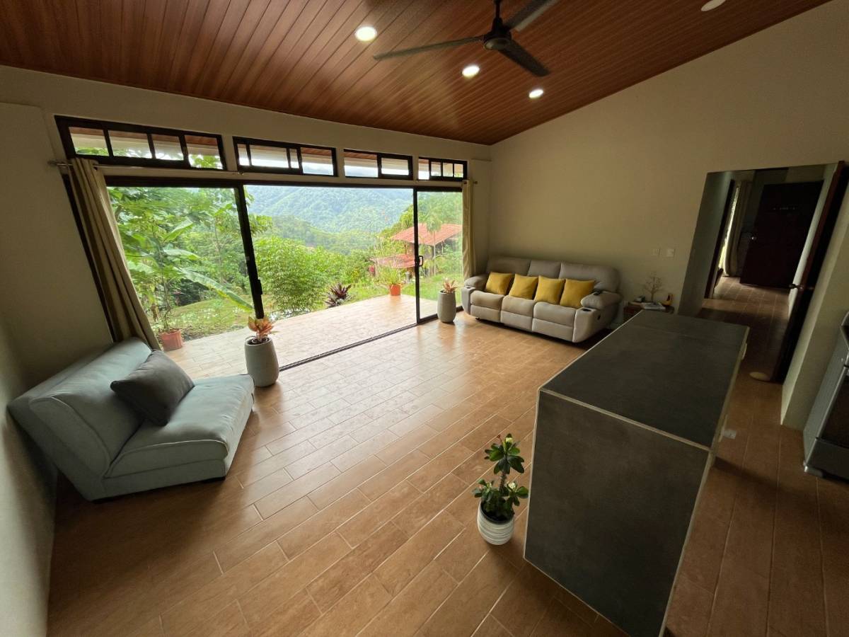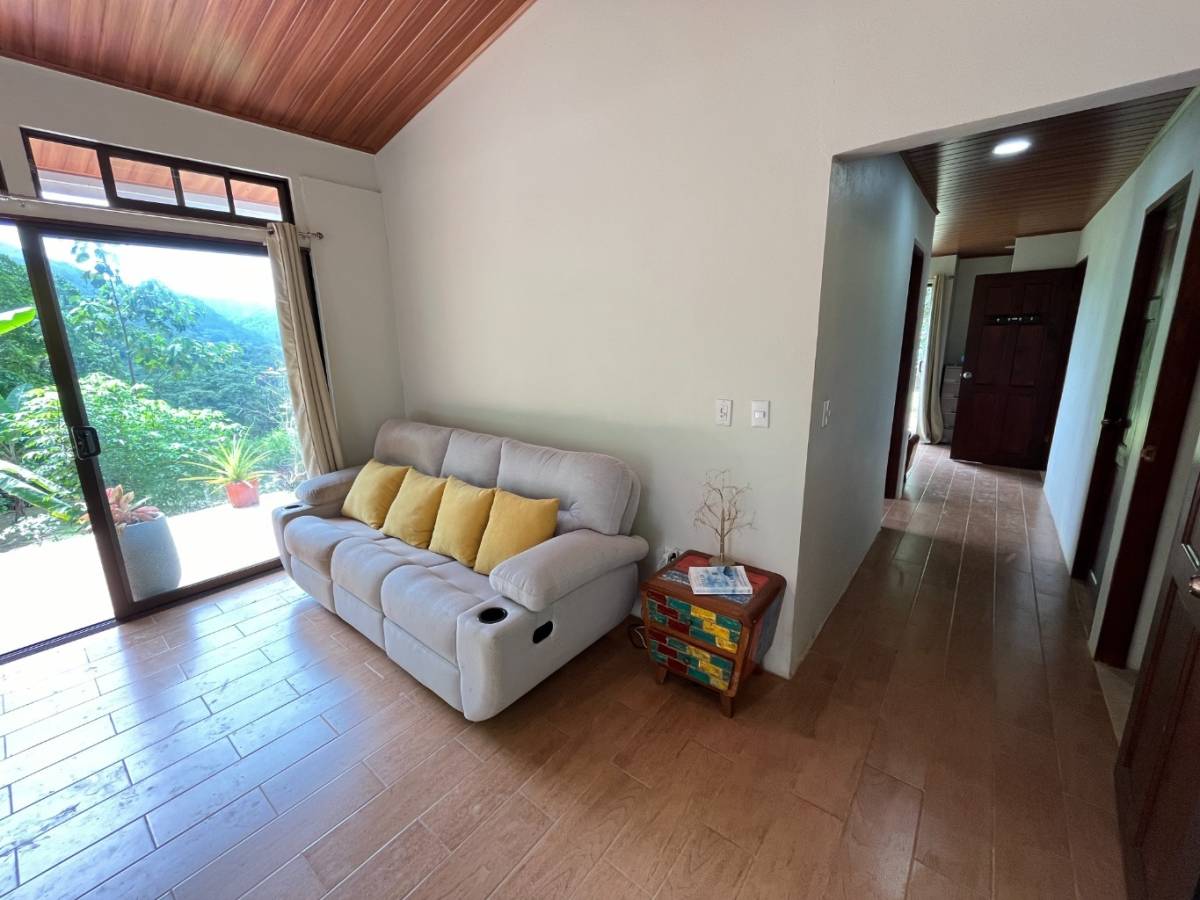 Above the village of Tres Ríos, the main residence is a cozy yet spacious 2-bedroom, 2-bath home with beautiful mountain views from the master bedroom and the large covered terrace, mature gardens, flowering plants and an abundant collection of Chemical-free fruit trees create a tropical atmosphere designed for relaxation, a large attached carport fits couple vehicles and the laundry area sits conveniently behind the home.