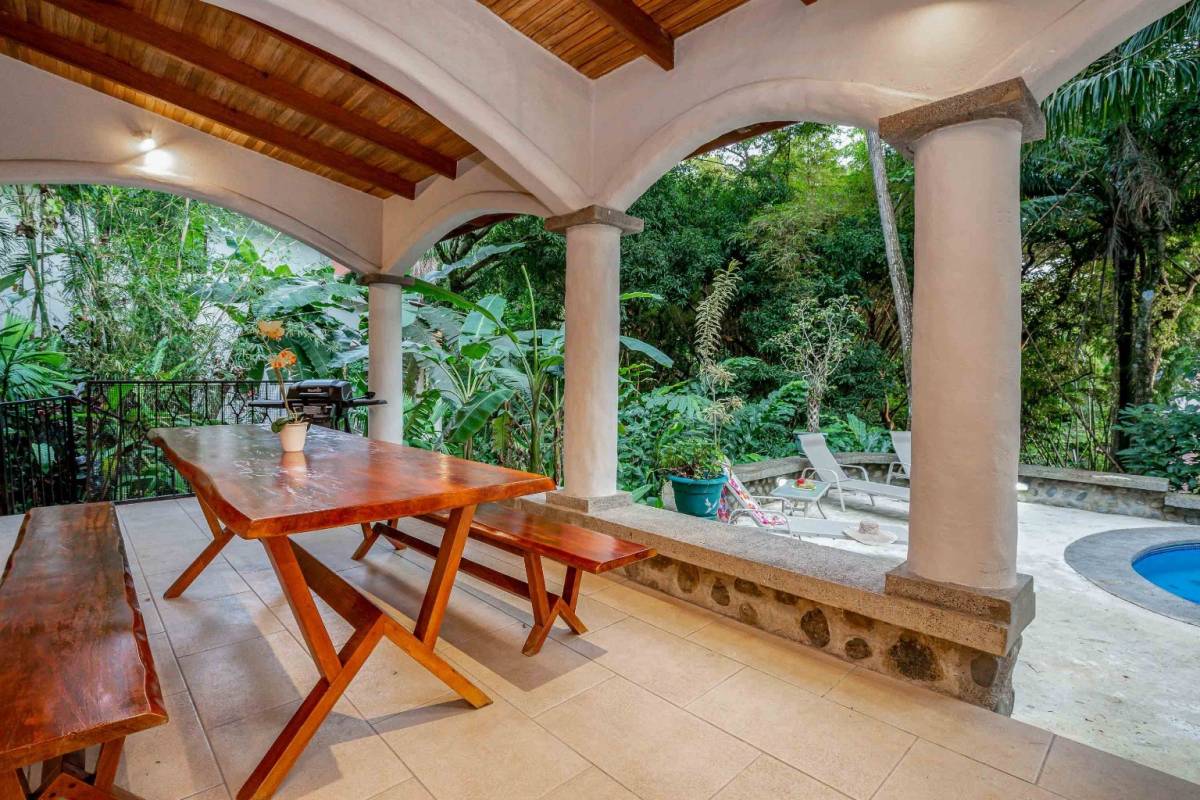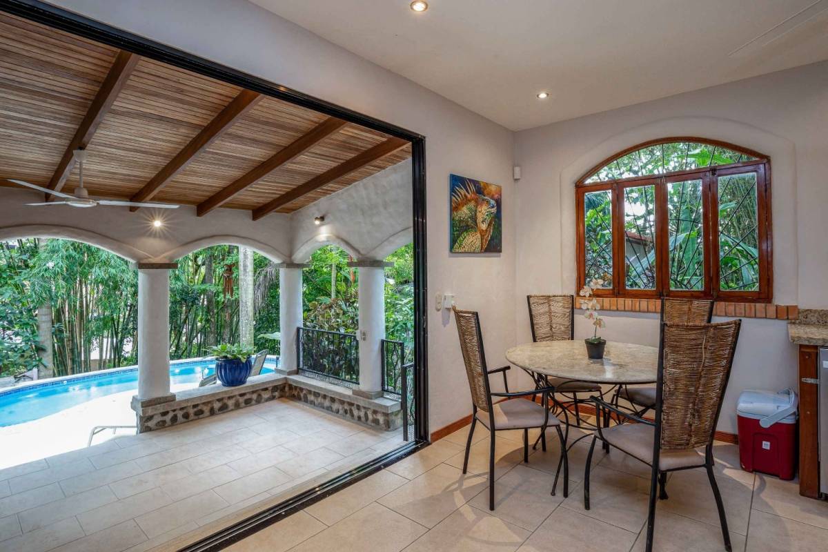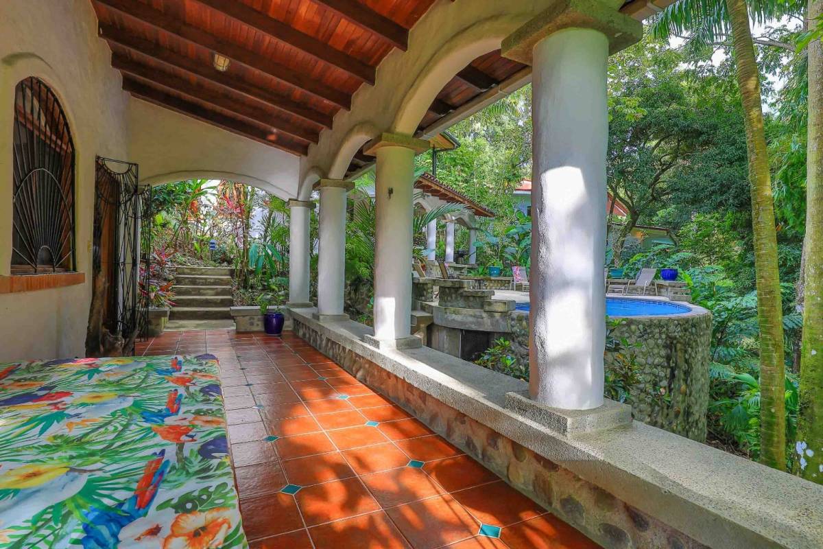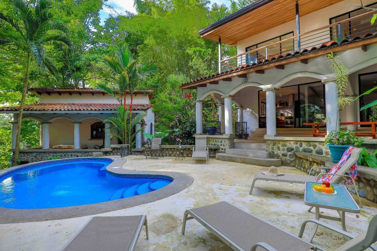 Tucked in the lush rainforest of Manuel Antonio, this enchanting property blends natural beauty with stylish comfort. Surrounded by vibrant ornamental gardens and mature native foliage, the home offers privacy, tranquility, and seamless indoor-outdoor living.